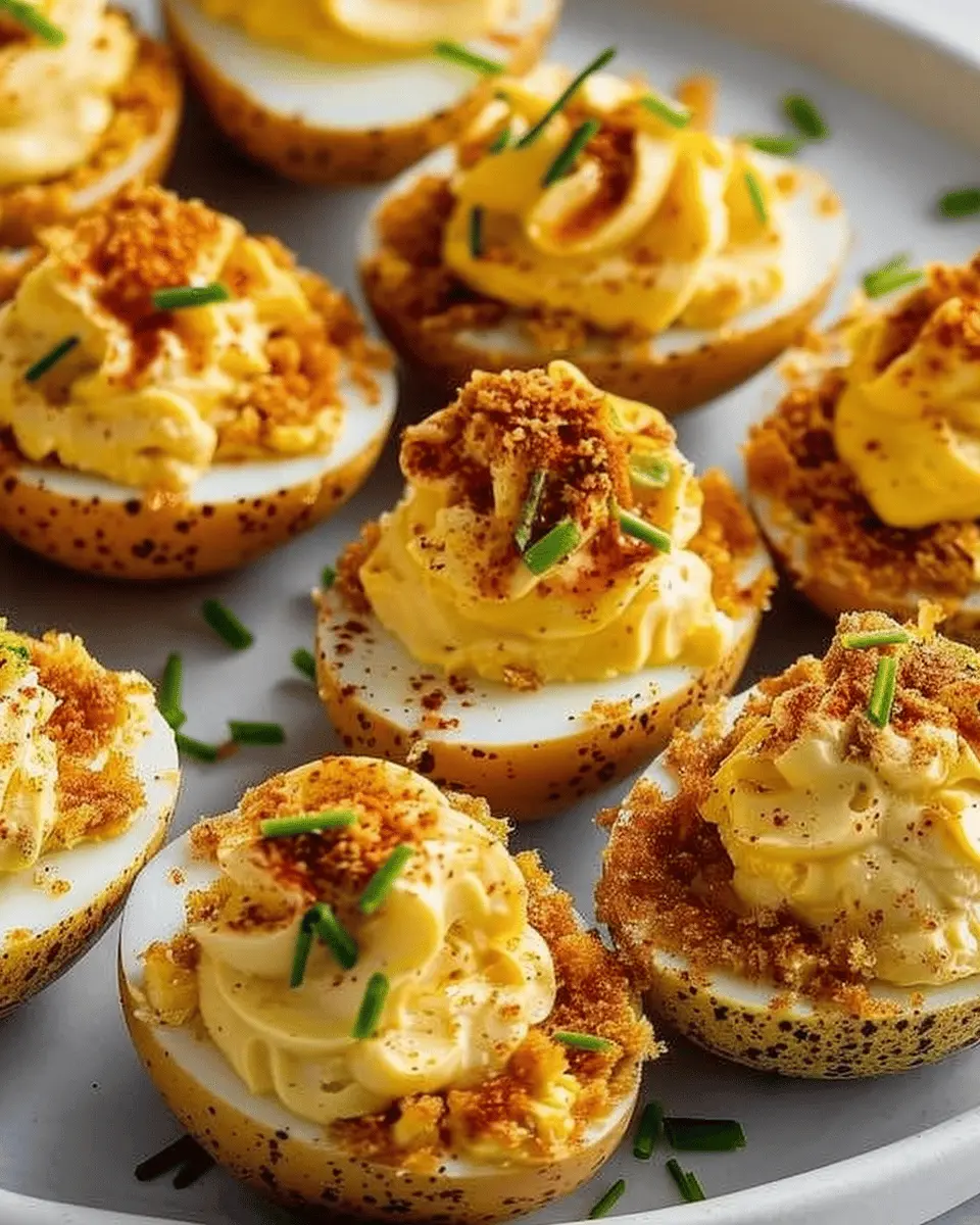 To make them, simply mash the yolks with the mayonnaise, Sriracha, mustard, and seasonings until smooth. Then, spoon or pipe your spicy mixture back into the egg whites. This version not only satisfies your spice cravings but also looks vibrant and inviting.