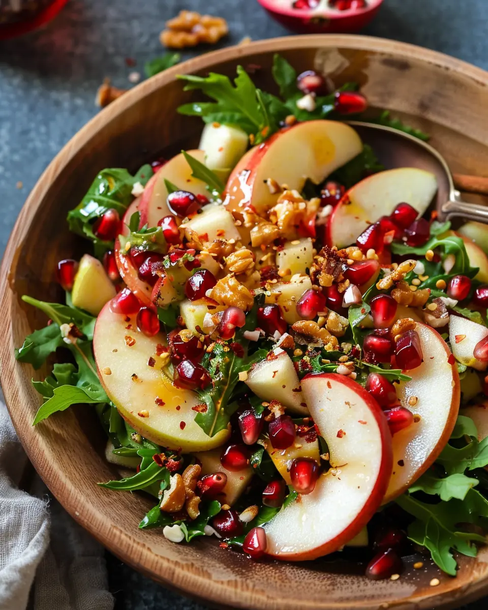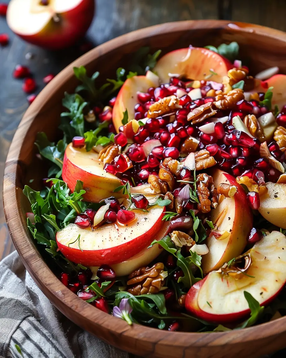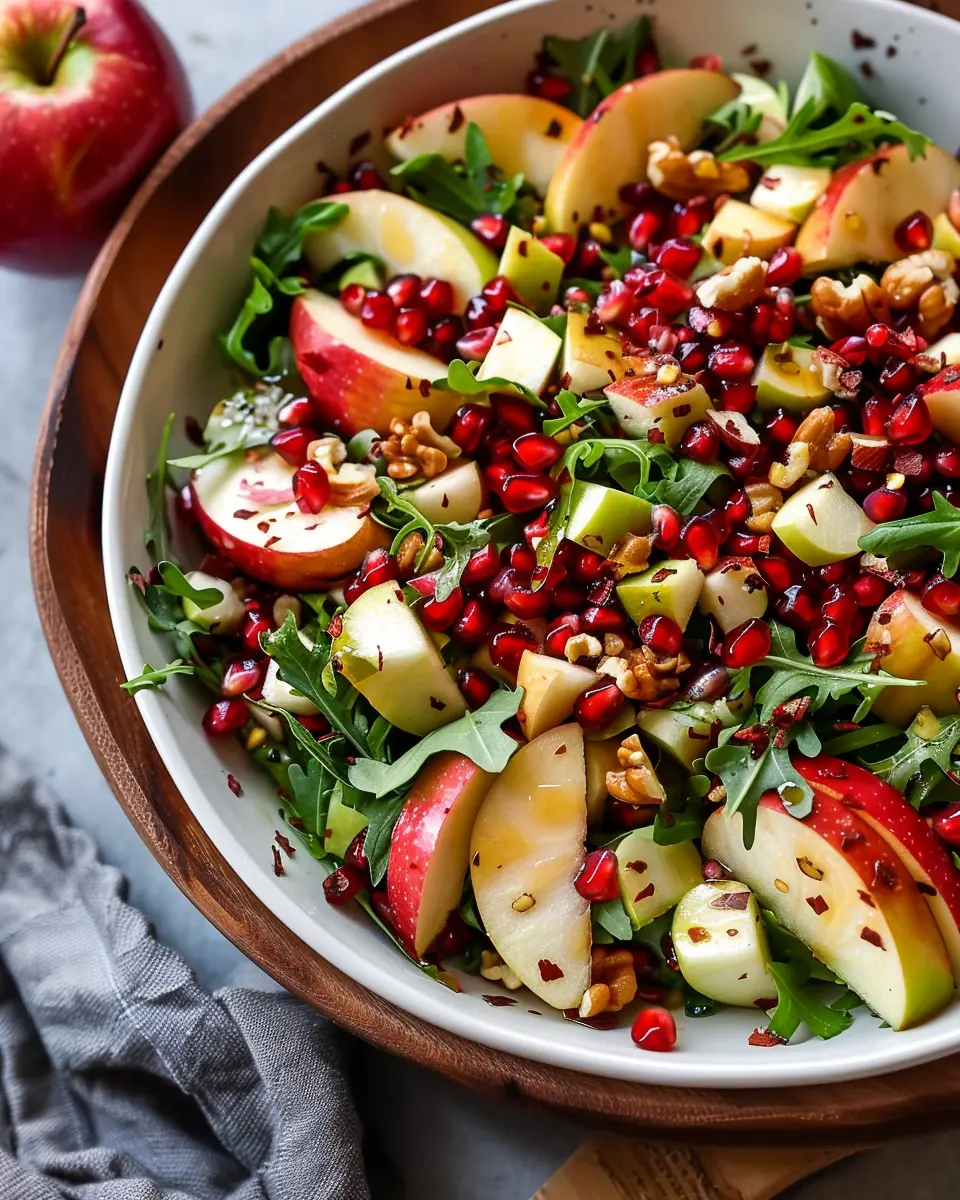 Quick and Easy: With just a few ingredients like crisp apples, juicy pomegranate seeds, and a drizzle of your favorite dressing, you can assemble this salad in minutes. Perfect for those evenings when you need to get food on the table fast.