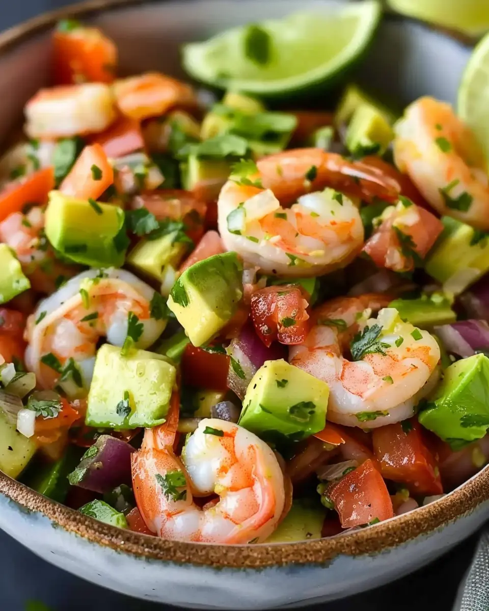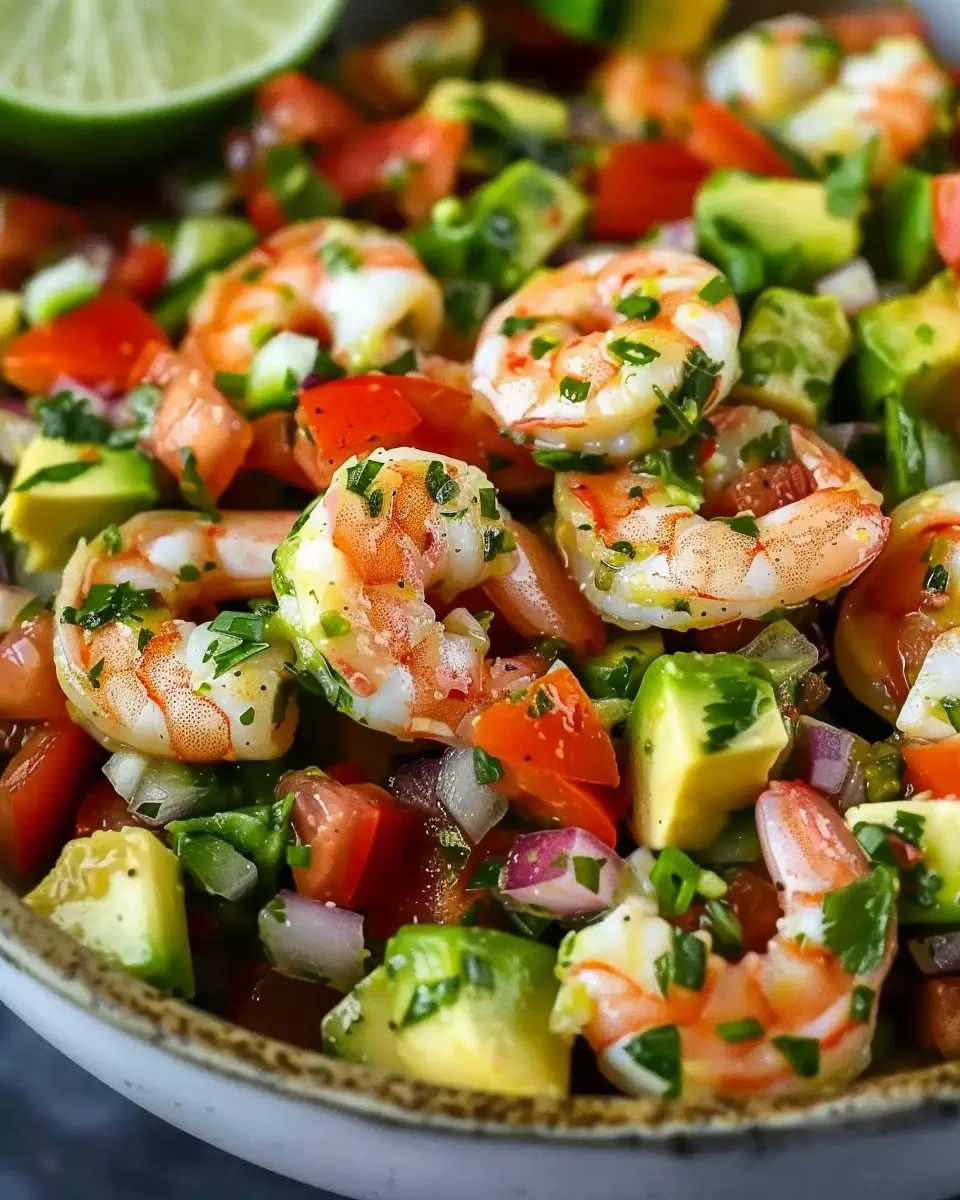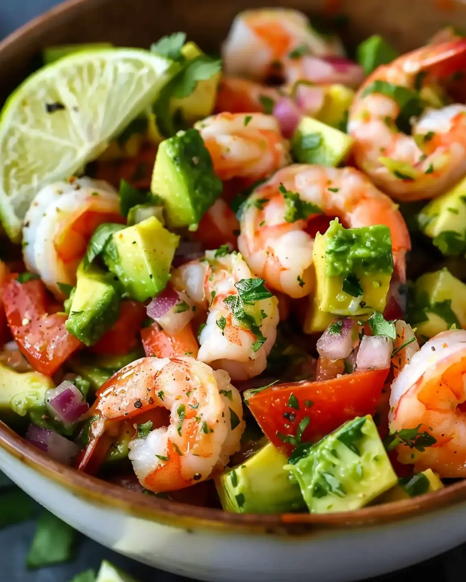 An invigorating Avocado Salsa Shrimp Salad that combines fresh flavors and colorful ingredients, perfect for a light meal.