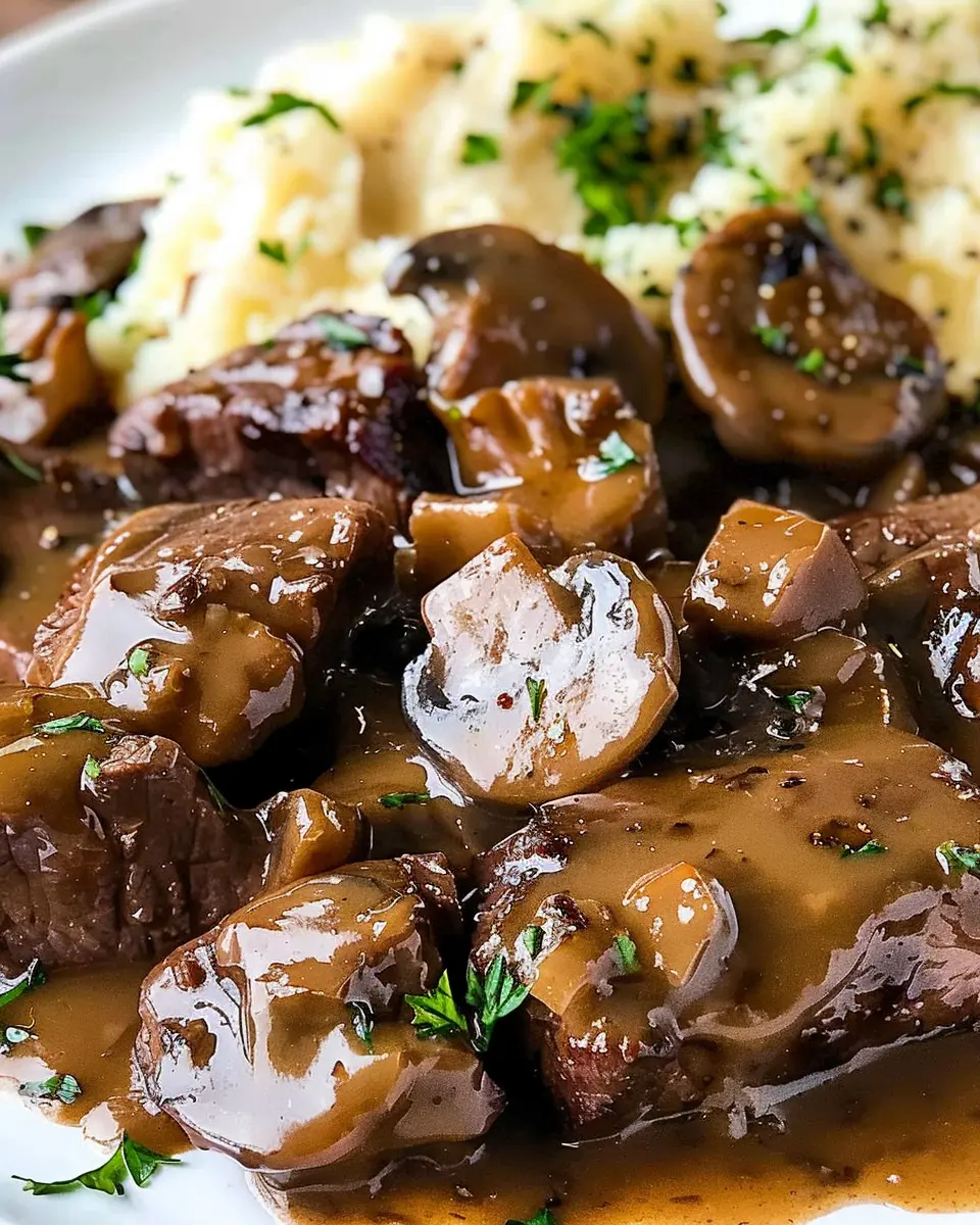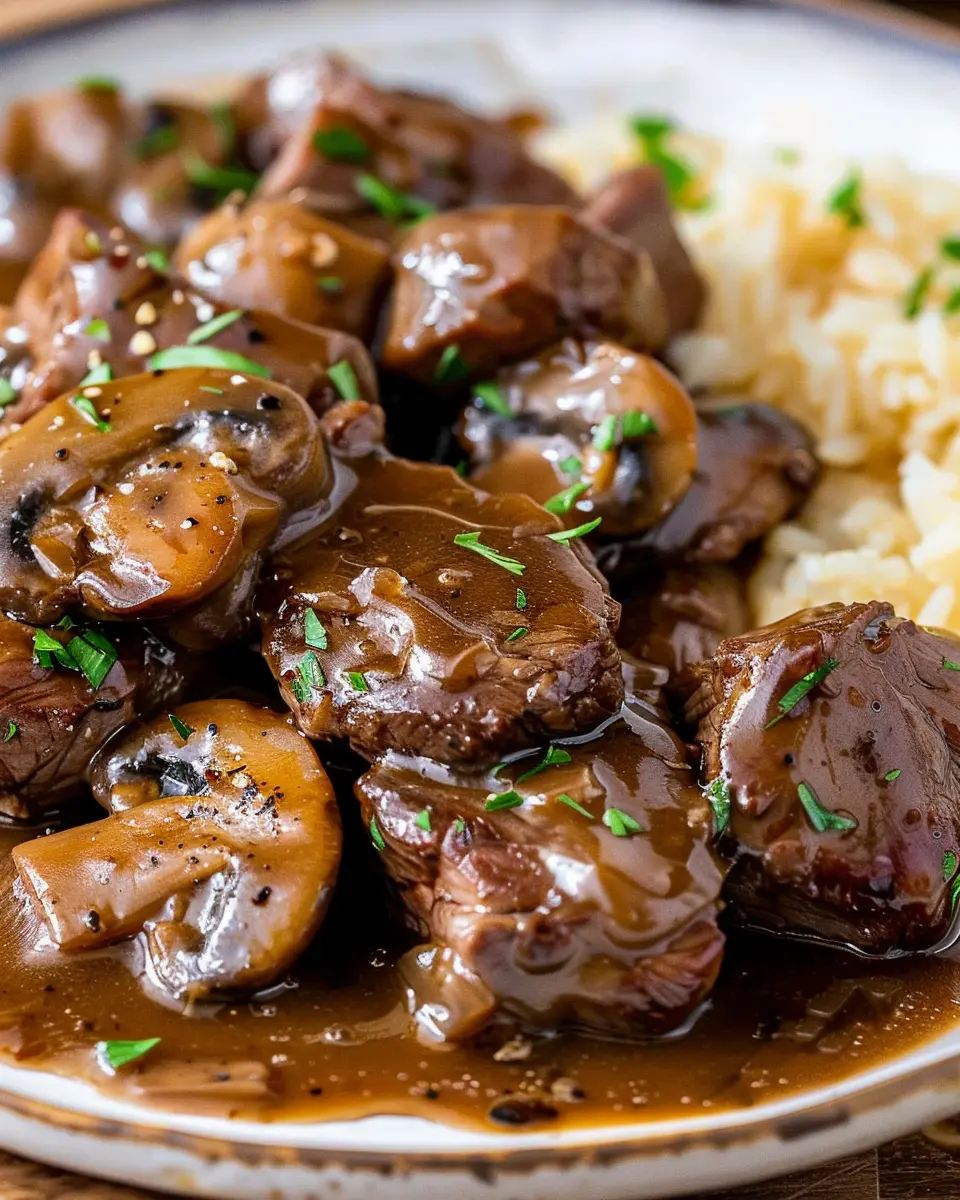 PrintBeef Tenderloin Tips in Mushroom Gravy: A Juicy Comfort Dish