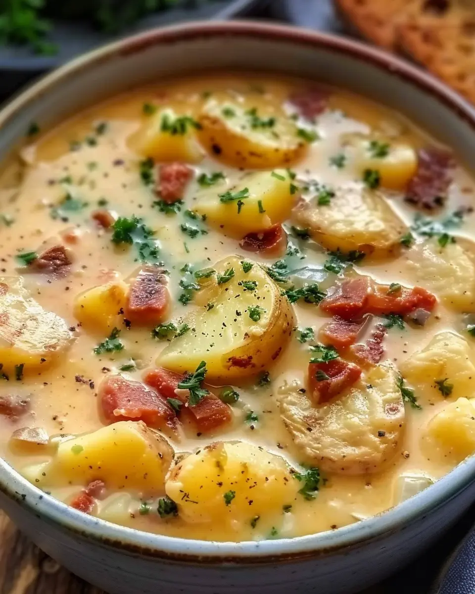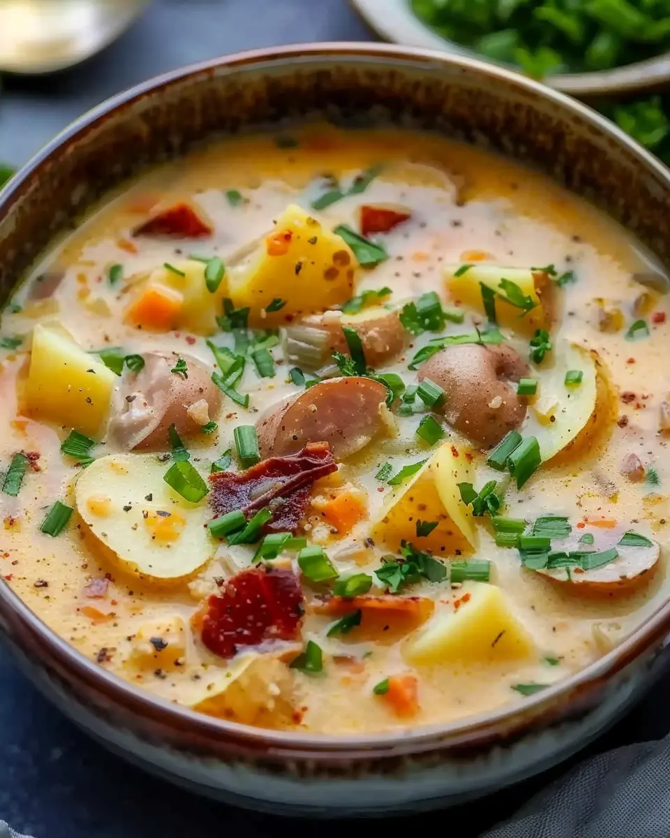 Home » Recipes » Cajun Potato Soup Recipe: Easy Comfort with Turkey Bacon and Chicken Ham