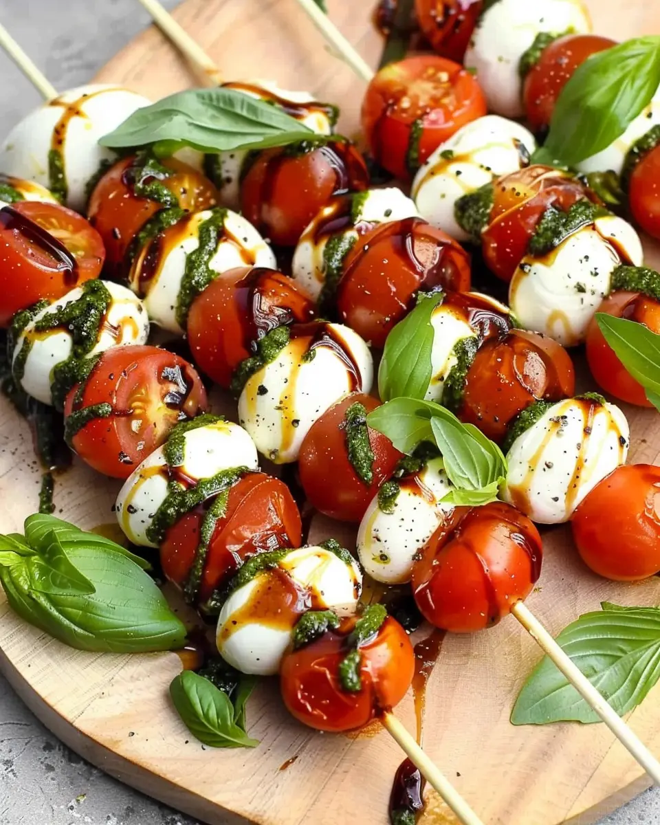 Presentation matters! Arrange your skewers on a platter for visual appeal. You might even want to garnish with a few extra basil leaves or a drizzle of balsamic across the platter for that extra touch.