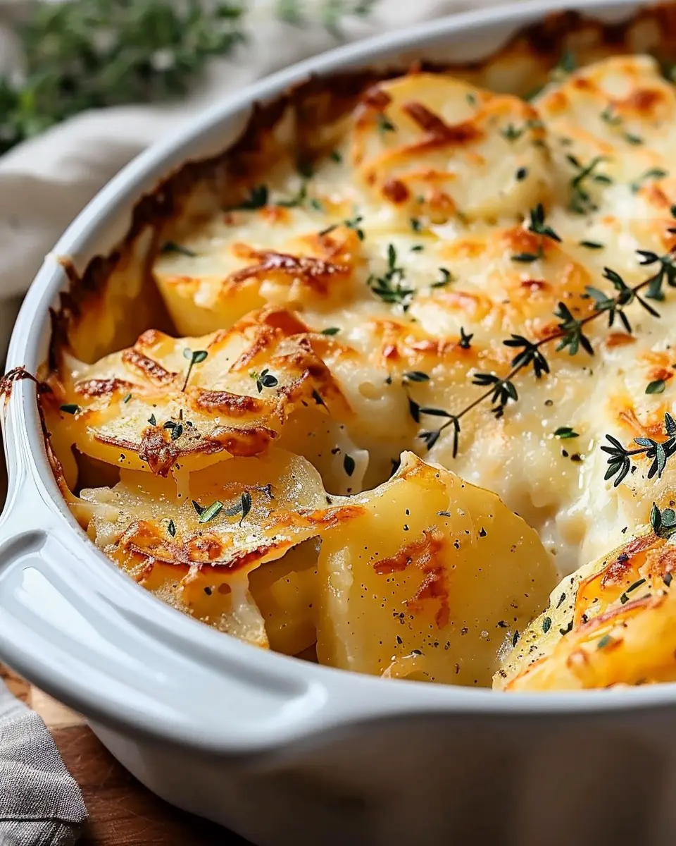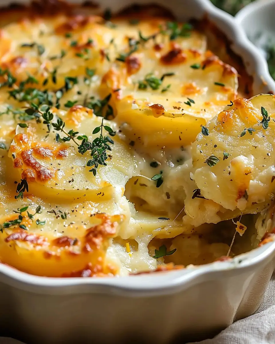 Indulge in the creamy goodness of this cheesy herb and potato casserole, perfect for winter comfort meals.