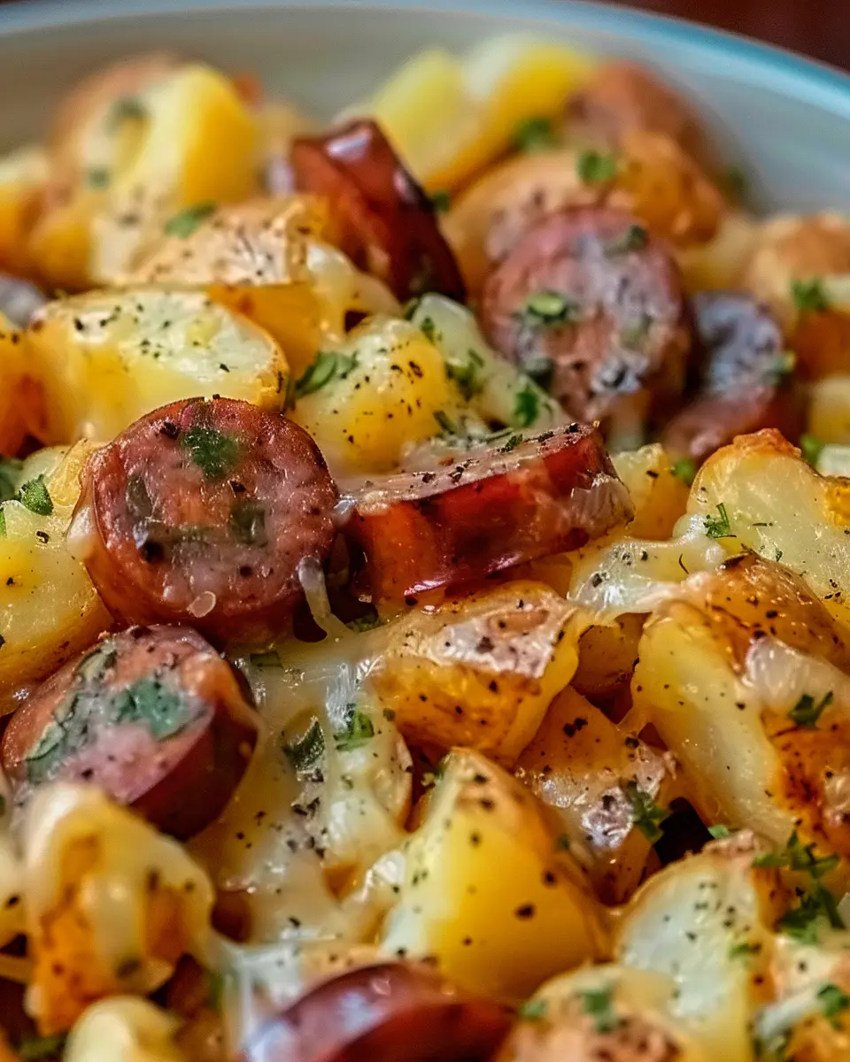 Enjoy this delicious and easy recipe for Cheesy Ranch Potatoes and Smoked Sausage that combines comfort food with incredible flavor.