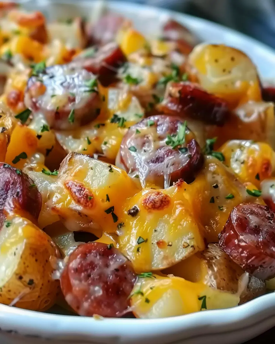 Keywords: Cheesy Ranch Potatoes, Smoked Sausage, Comfort Food, Easy Recipe