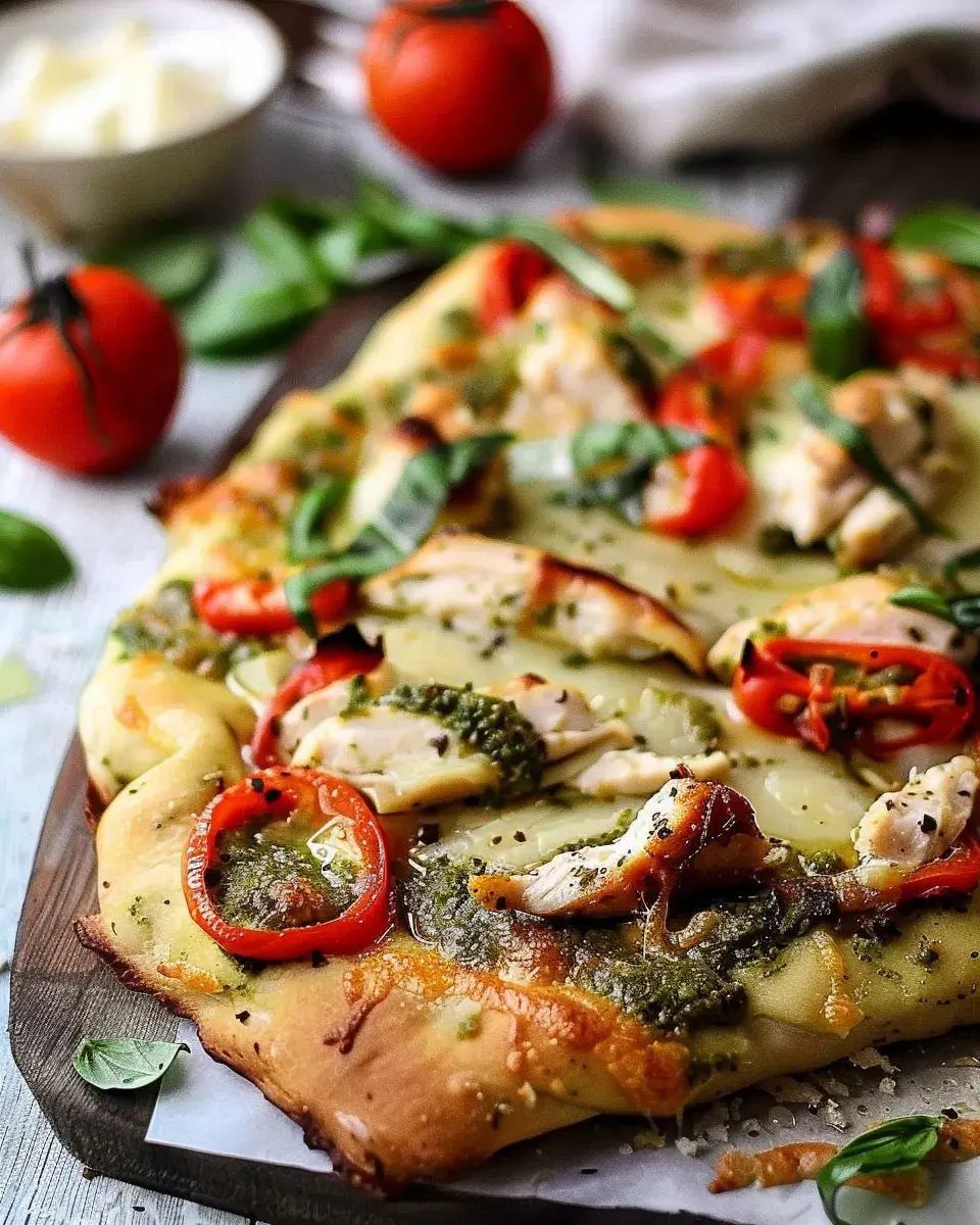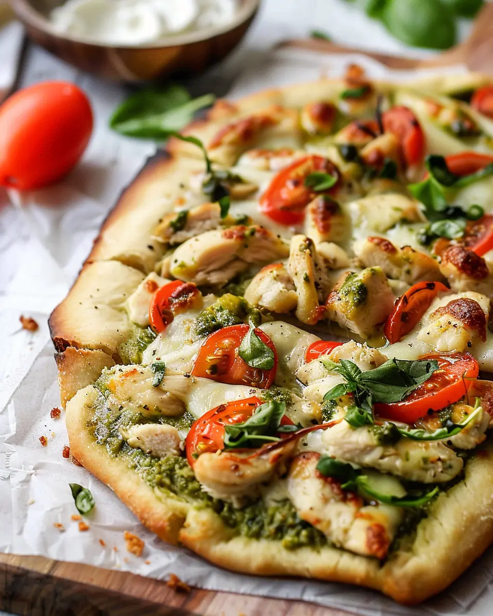 Whether you’re cooking for yourself or hosting a casual weeknight gathering, chicken pesto flatbread hits the spot every time. Imagine serving it alongside a fresh green salad or a chilled glass of sparkling water infused with lemon or cucumber. Feeling inspired? Grab your ingredients and let’s dive into this scrumptious recipe that makes weeknight dinners enjoyable and hassle-free!