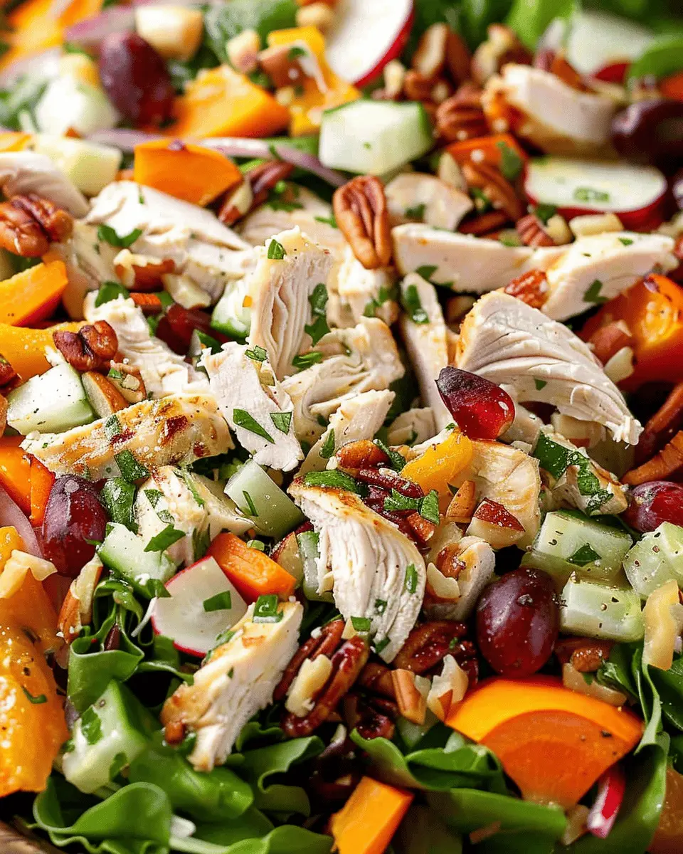 The Chopped Fall Harvest Salad with Chicken is more than just a seasonal dish; it’s a vibrant medley of flavors that can brighten your table all year long. Packed with nutritious ingredients like apples, roasted squash, and crunchy nuts, it’s a celebration of fresh produce that’s not just limited to fall.