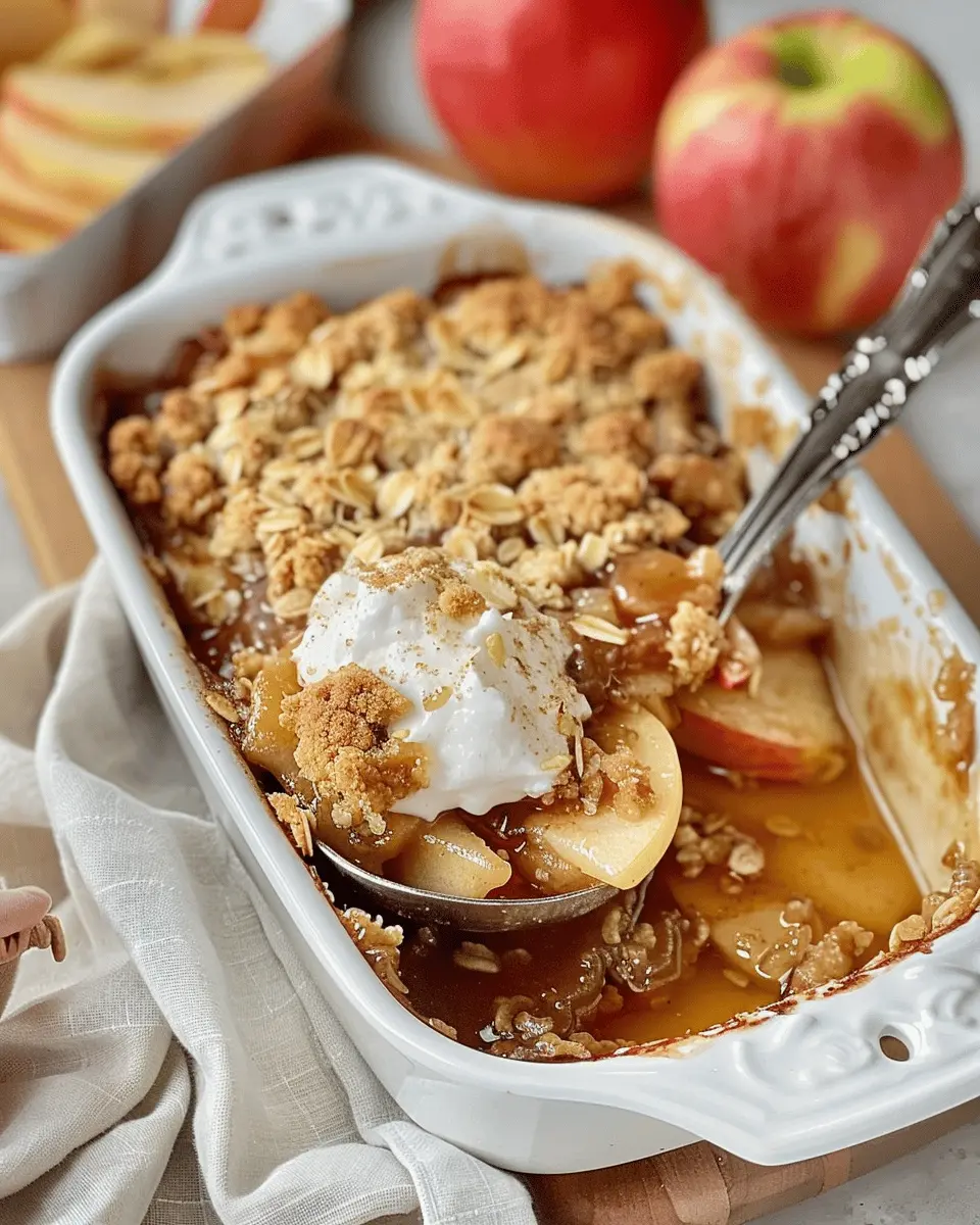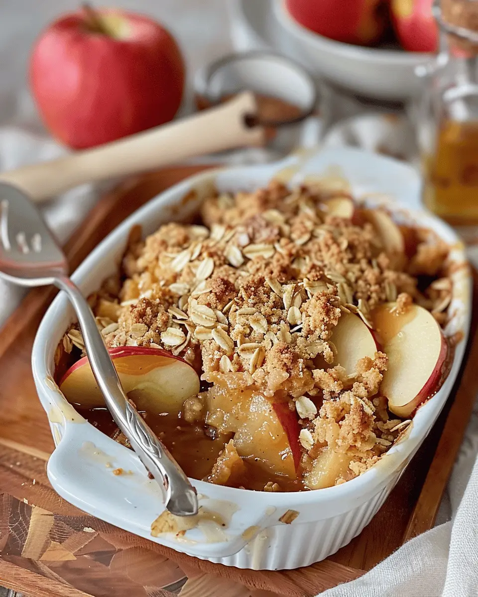 Once everything is assembled, pop it in the oven and let it bake for 30-35 minutes. You’ll know it’s ready when the topping is golden brown and the apples are bubbling. The aroma? Absolutely irresistible!