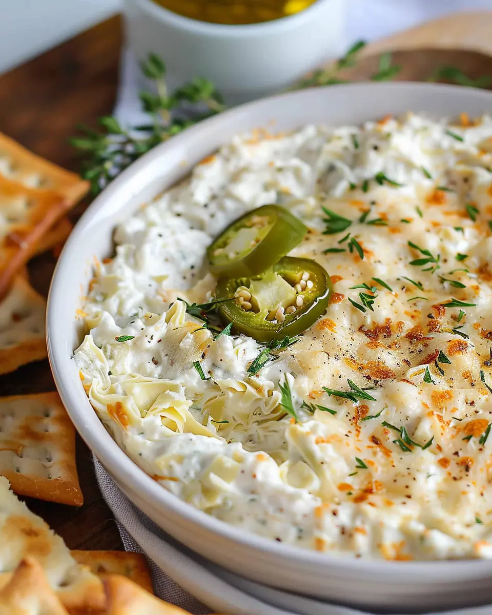 Whether you pair it with crunchy vegetables or your favorite chips, this dip is sure to impress. Plus, the vibrant blend of artichokes and jalapeños offers a delightful kick that will have everyone coming back for seconds. Next time you’re hosting, think of this dip as not just a recipe, but a way to connect and create lasting memories.