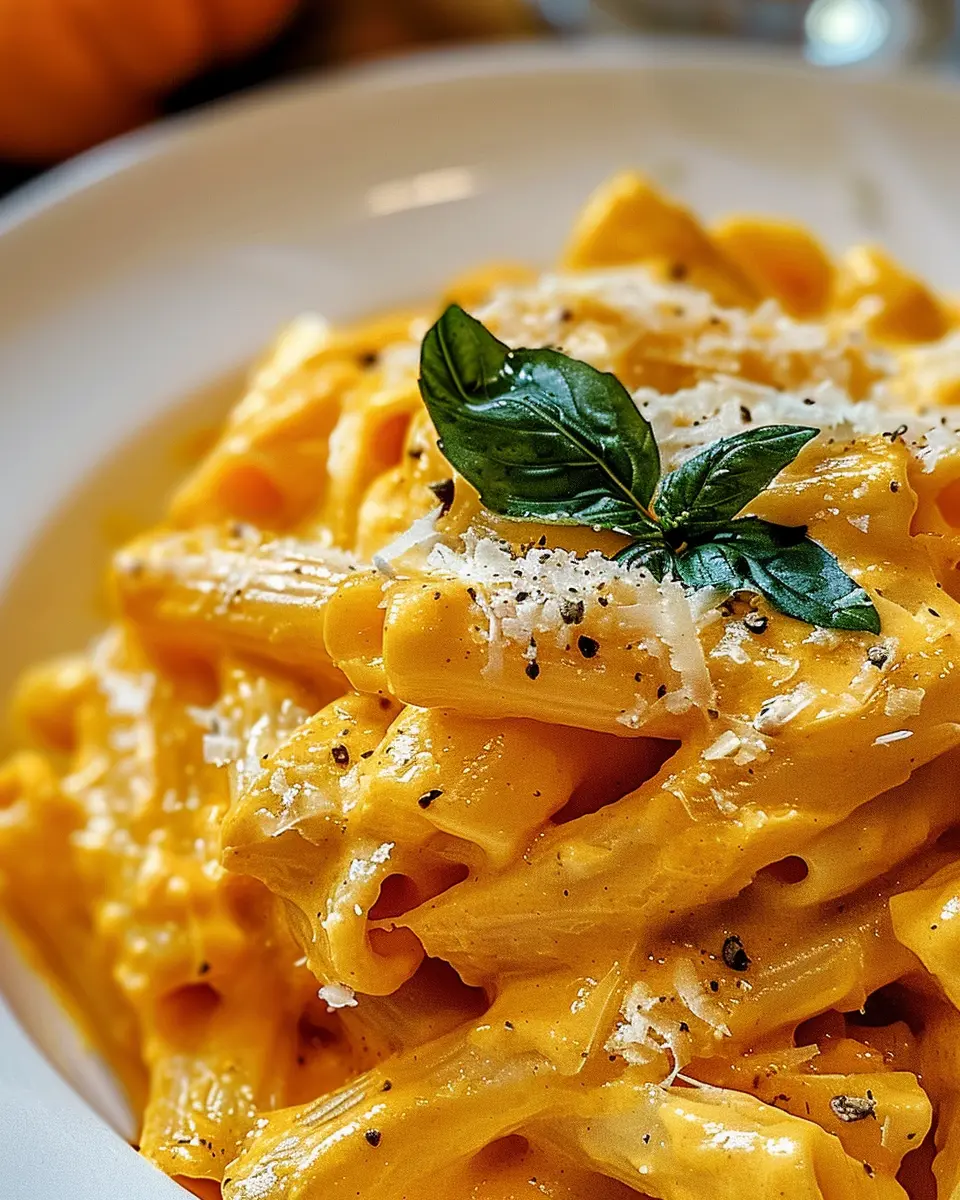Indulge in the flavors of fall with this creamy parmesan pumpkin pasta, perfect for cozy dinners.