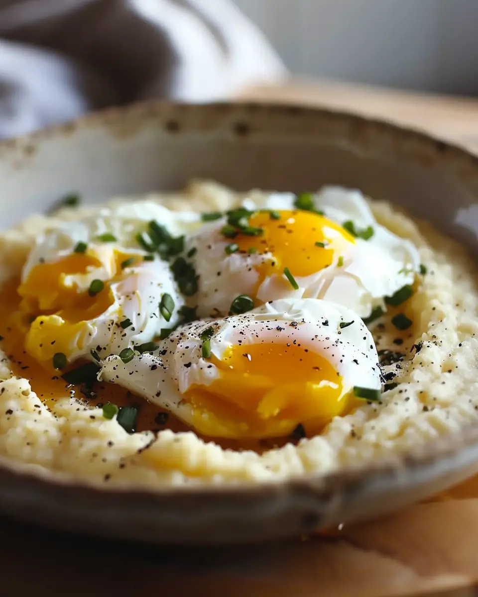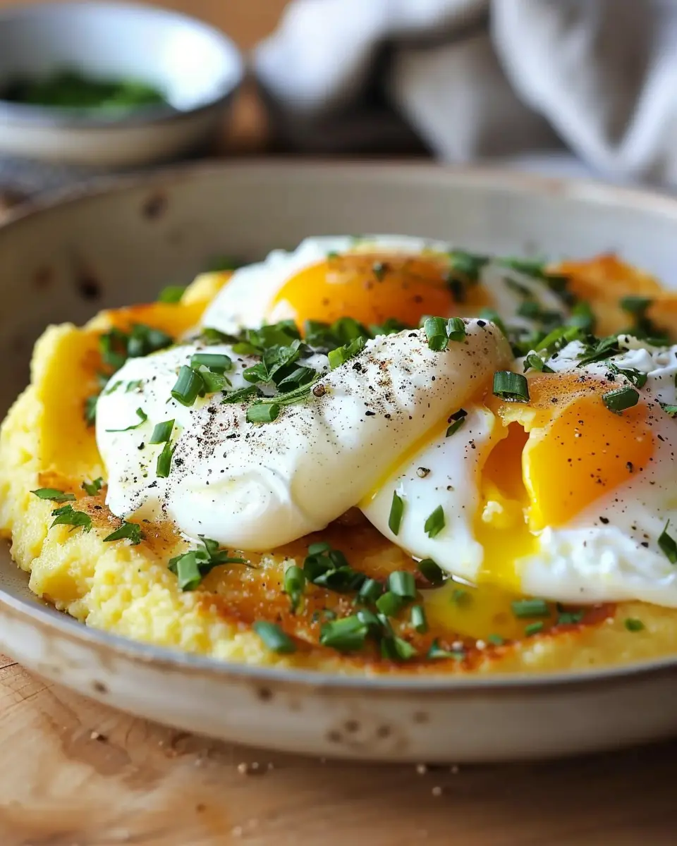 A delicious and comforting recipe for creamy polenta topped with perfectly poached eggs, ideal for a cozy meal.