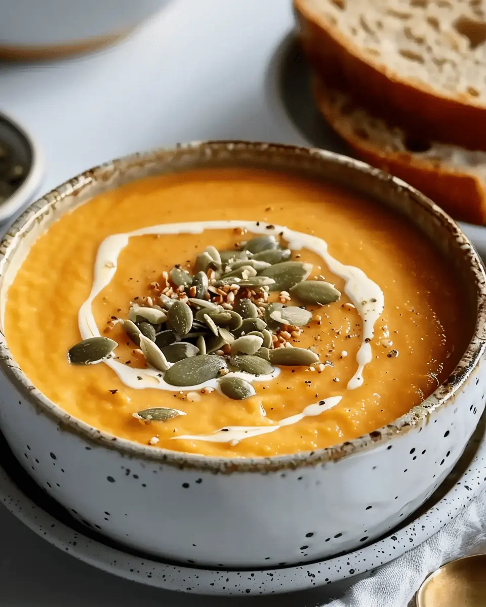 These toppings not only add texture but also elevate the overall visual appeal of your creamy pumpkin soup. As you serve it hot, consider pairing it with a crusty slice of bread or a delightful side salad to complete your meal.