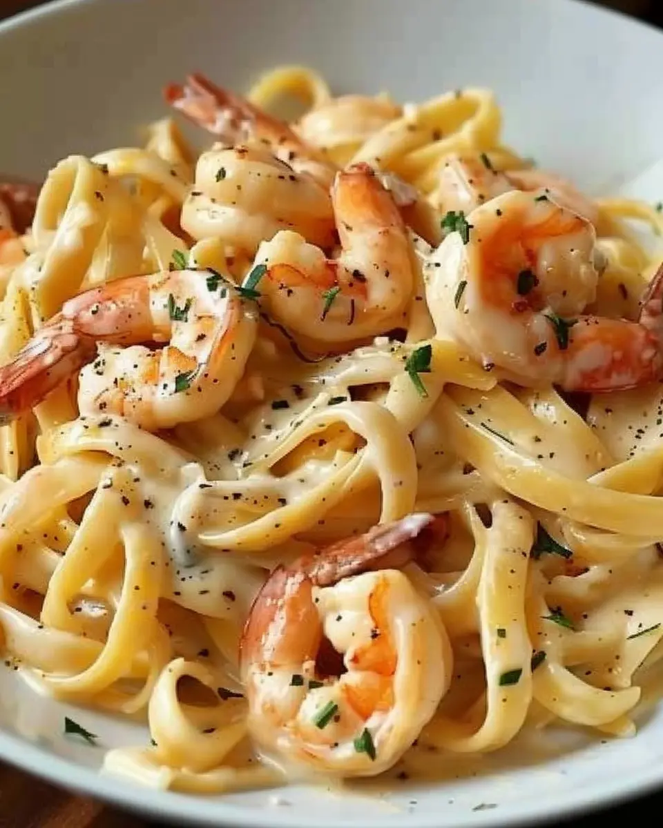 A delicious creamy shrimp fettuccine pasta recipe featuring a homemade alfredo sauce that elevates the dish to new heights.