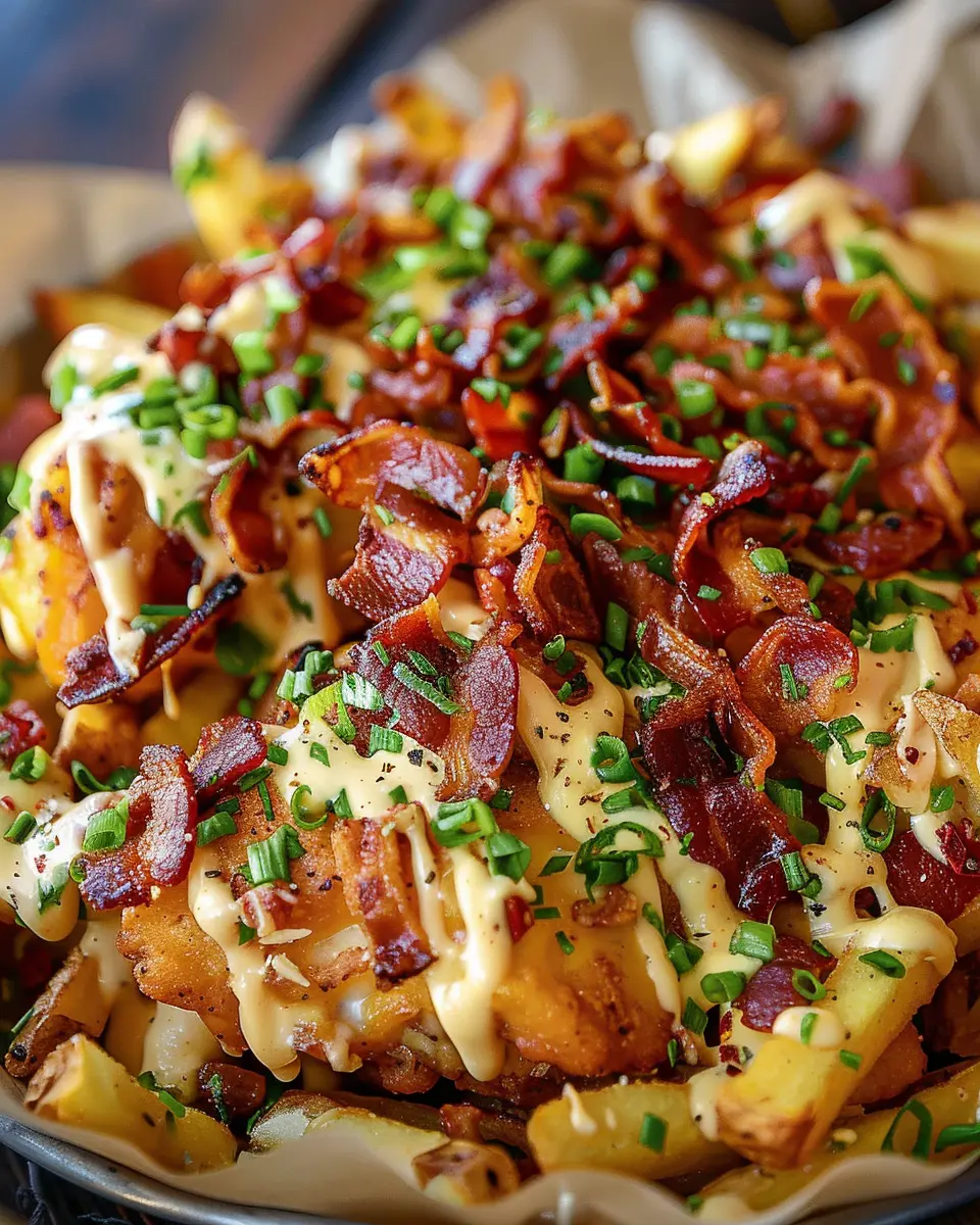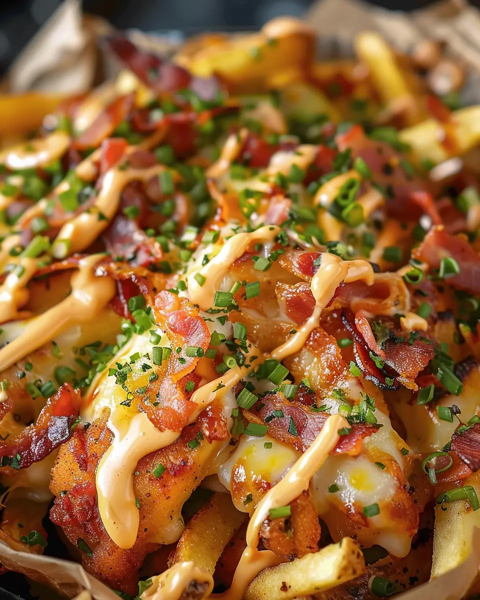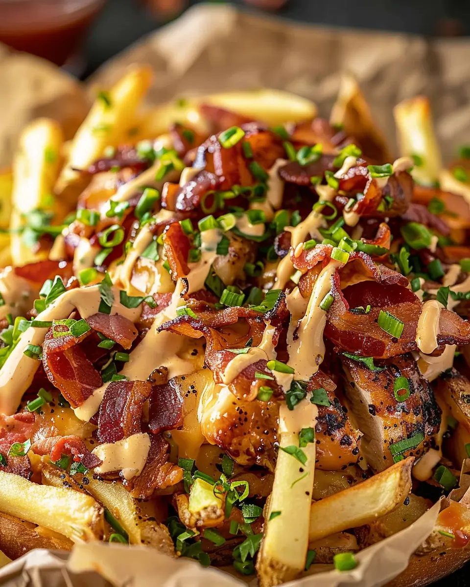 Dirty Chicken and Turkey Bacon Loaded Fries: Indulgent Comfort Food