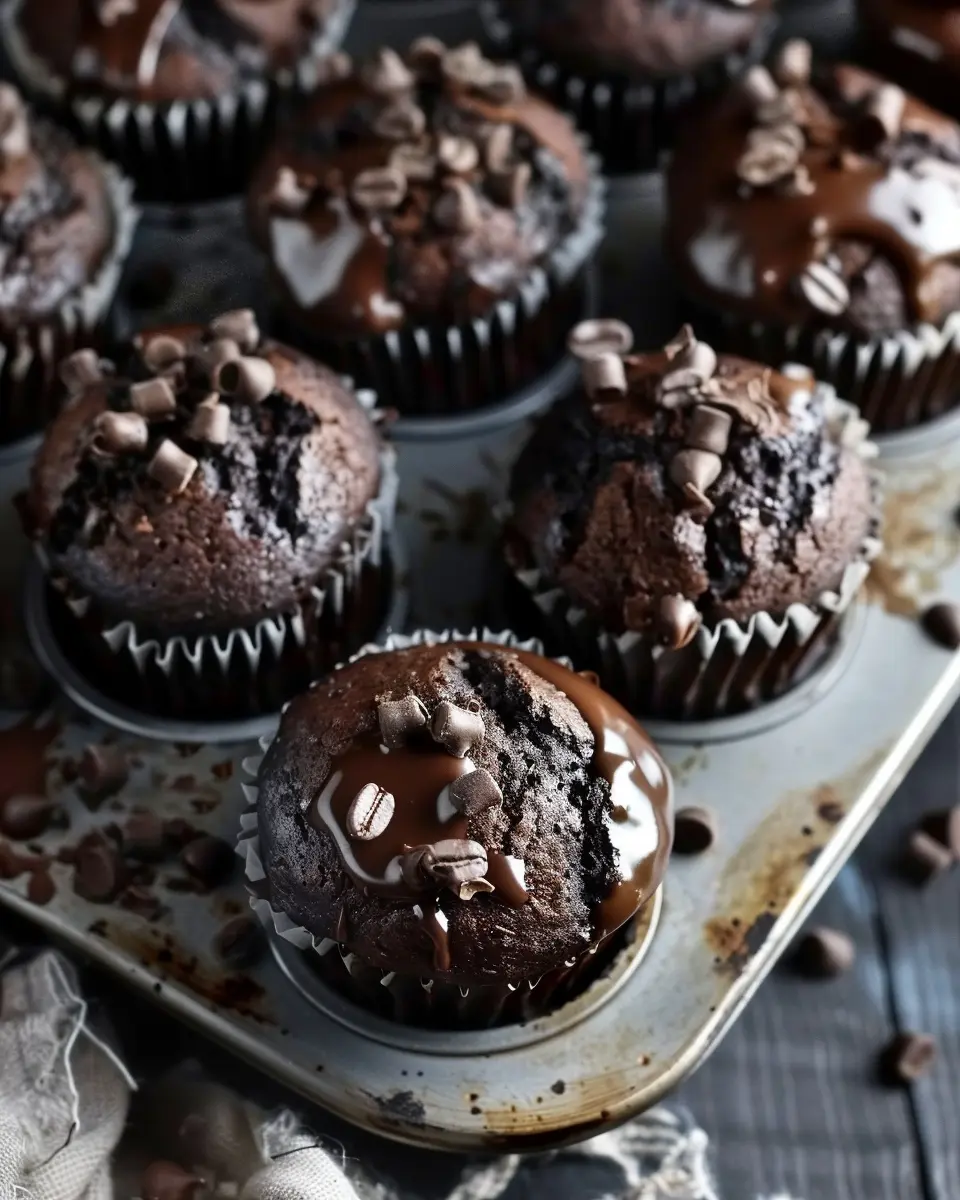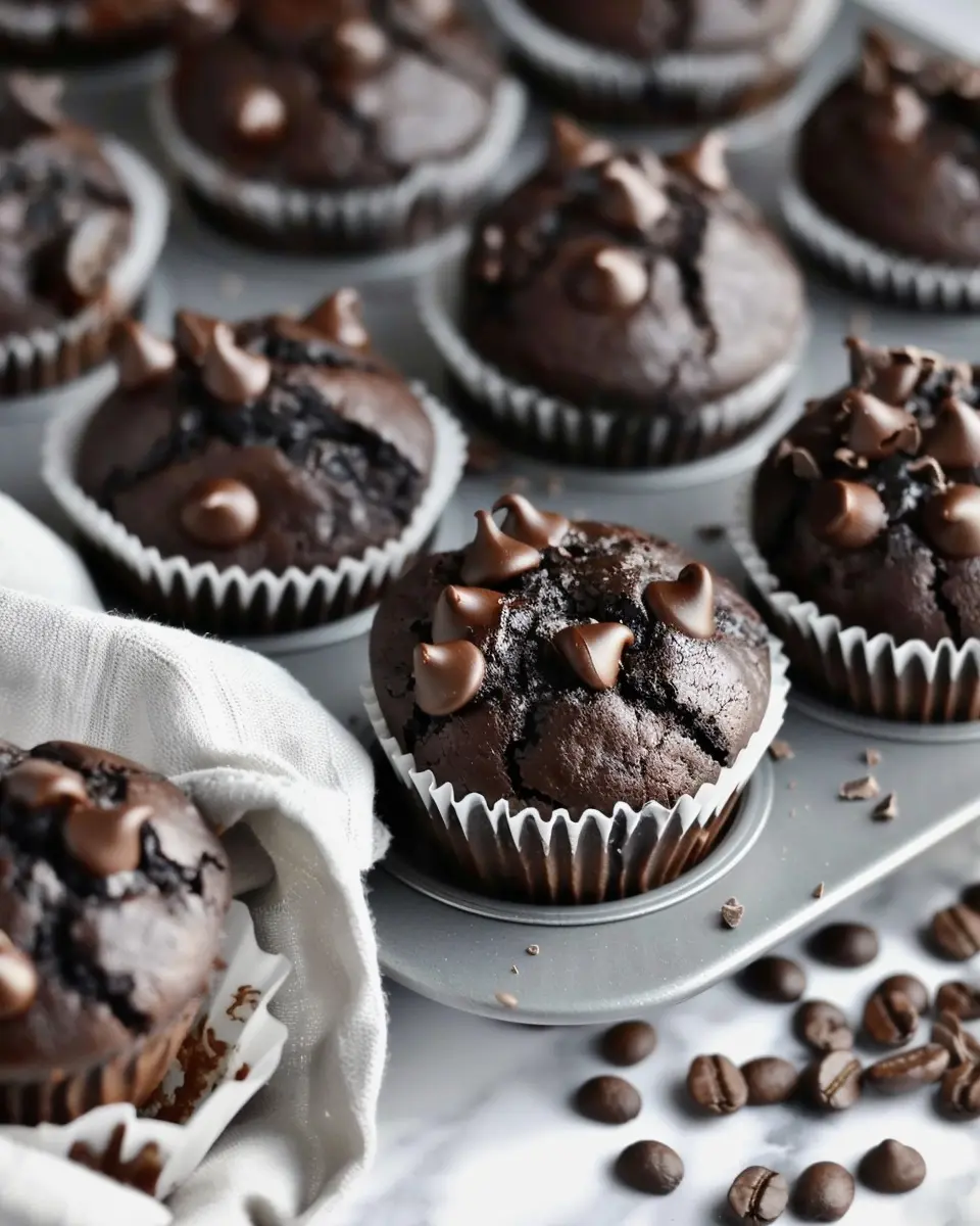 Indulge in the rich flavors of double chocolate and espresso with these decadent muffins, perfect for coffee lovers.