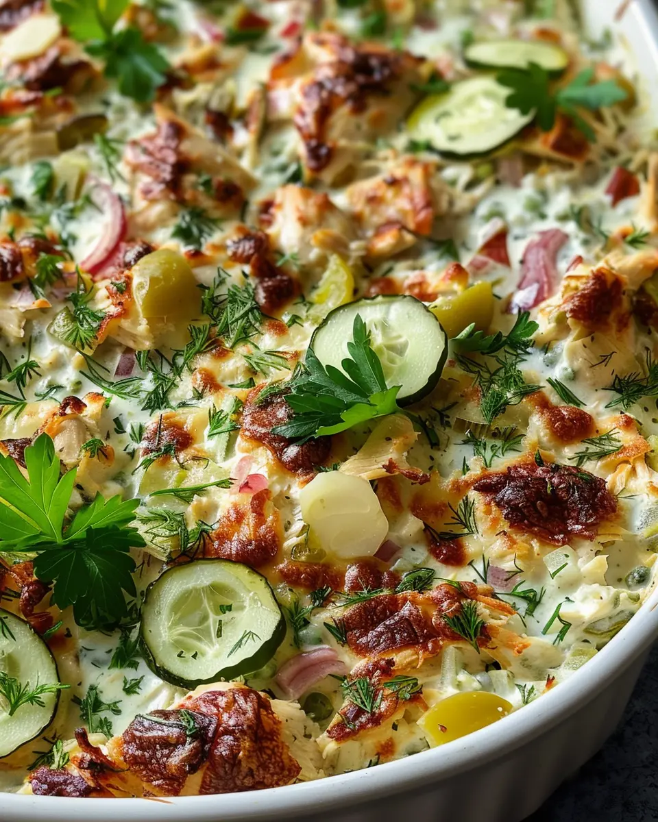 Flexibility is key in cooking! If you can’t find certain ingredients for your dump-and-bake chicken tzatziki casserole, don’t panic. Greek yogurt can be swapped for a dairy-free version by using cashew cream or coconut yogurt. Chicken ham can be replaced with turkey bacon for a lighter option. These swaps will still give you that delicious flavor profile everyone loves.