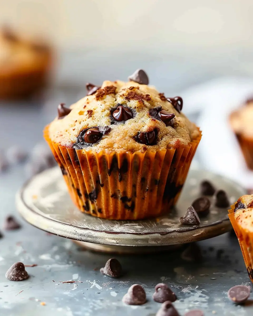 Enjoy these easy and moist banana chocolate chip muffins, perfect for a cozy morning treat.