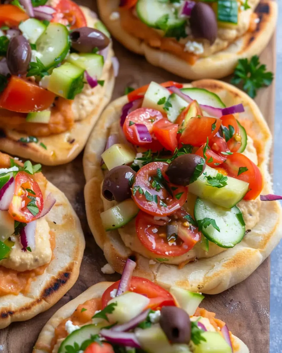Creating Greek Salad Naan Bites at home not only satisfies your cravings but also brings a sense of accomplishment. These delightful bites combine the crunch of fresh vegetables with the warm, fluffy naan and creamy hummus, making them an ideal snack or appetizer for gatherings.
