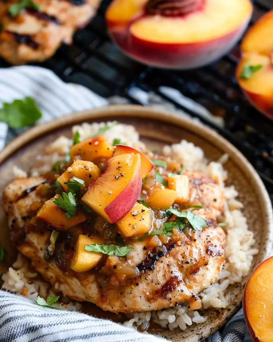 Fans of barbecuing know that the grill brings out unique flavors in food, and this dish is no exception. As your chicken sizzles, the aroma of grilled peaches fills the air, teasing your taste buds and making the wait almost unbearable.