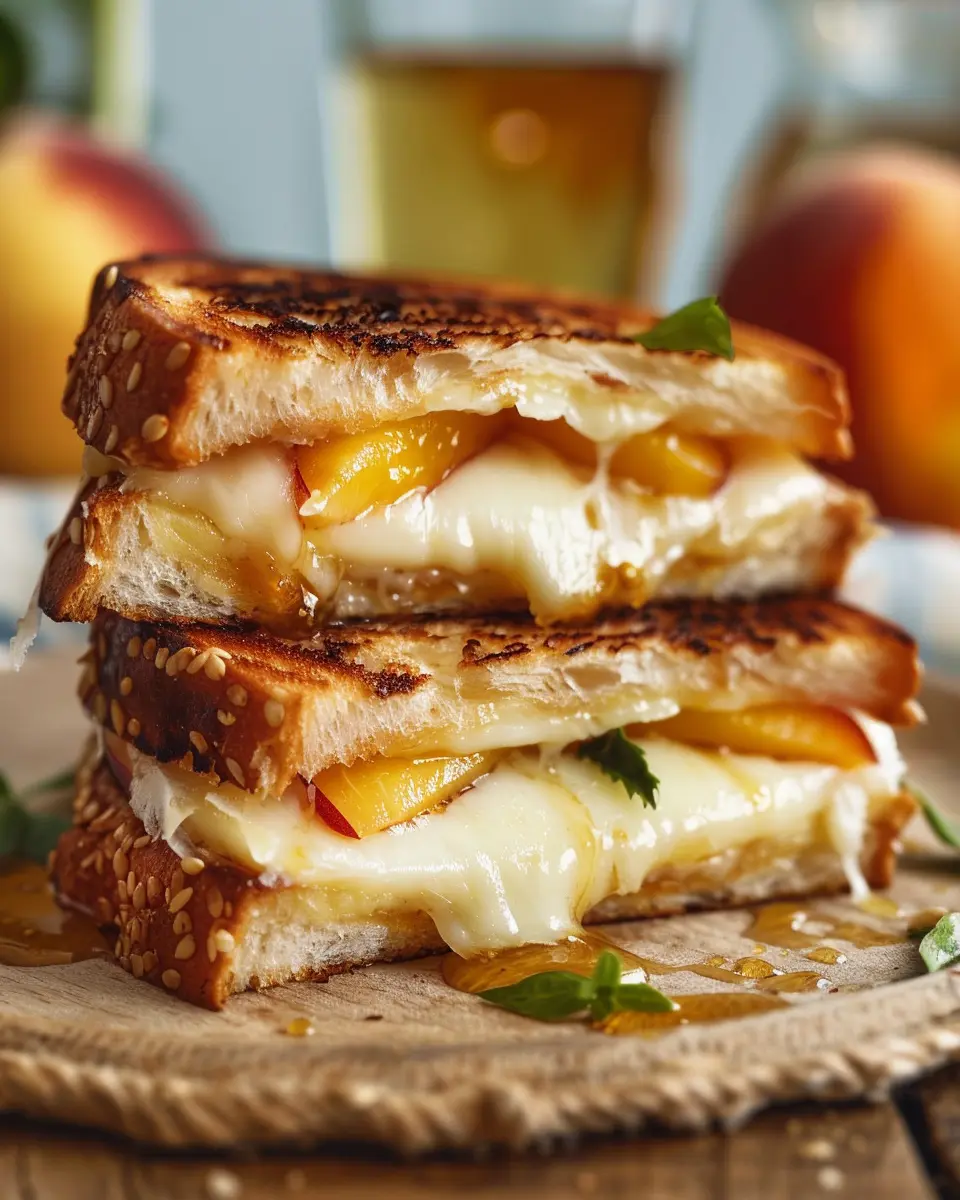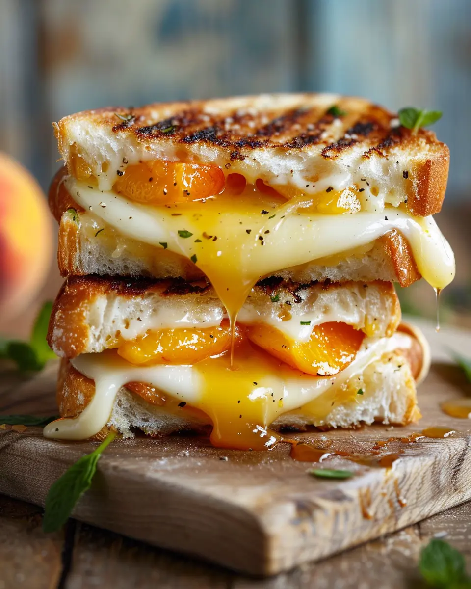 Ready to wow your taste buds? Let’s jump into the full recipe for this Honey Peach & White Cheddar Grilled Cheese and embark on an unforgettable culinary journey!