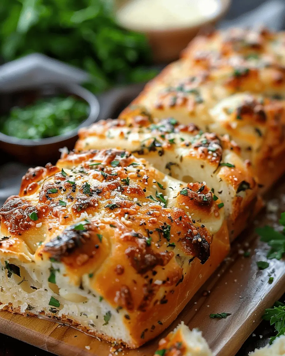 By following these straightforward steps, your own Italian Herb Cheese Bread will be a beautiful centerpiece at any gathering. Don’t forget to enjoy your masterpiece with a side of marinara sauce or your favorite olive oil for dipping!