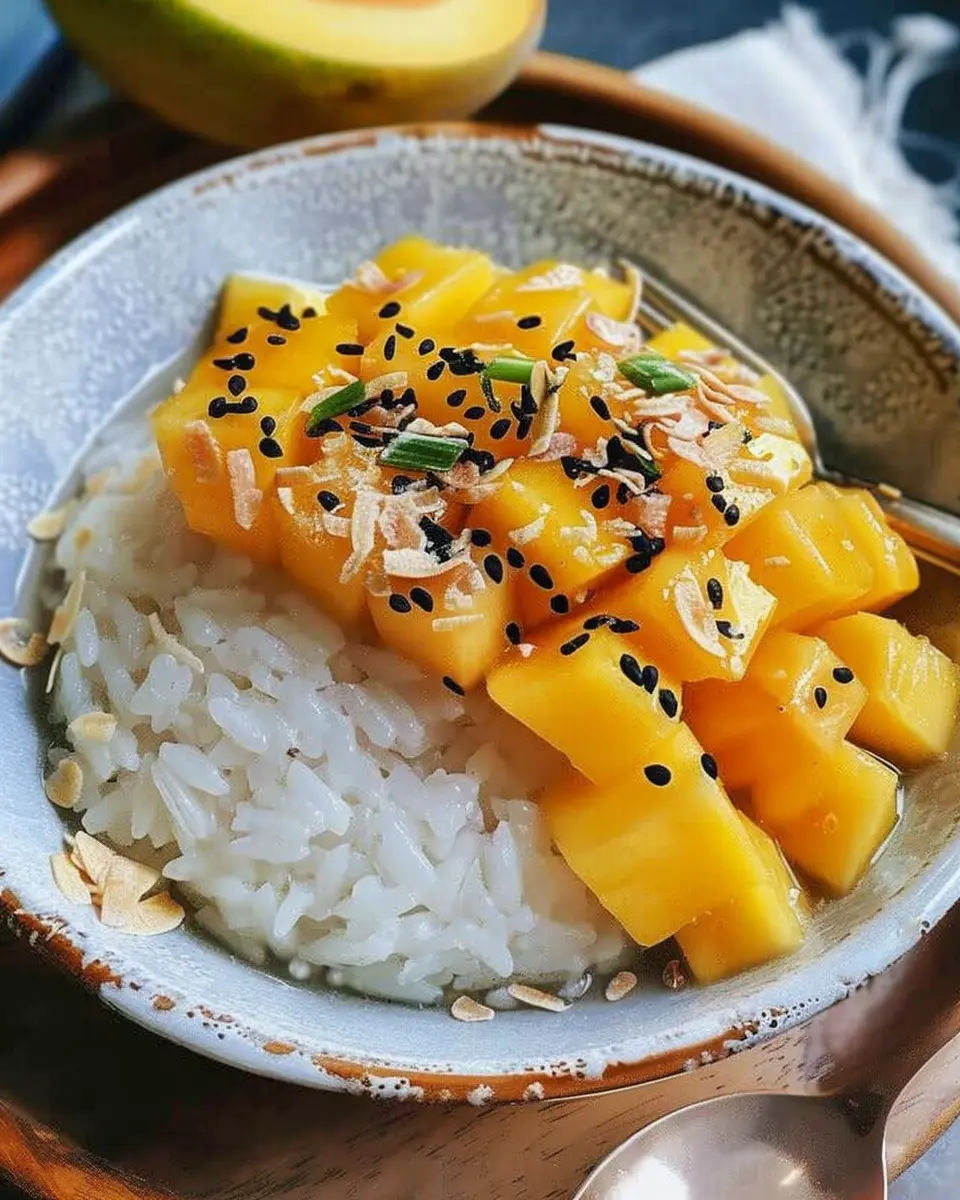 Mango Sticky Rice is a delicious dessert made from glutinous rice, fresh mango, and coconut milk. It’s sweet, creamy, and perfect for any occasion.