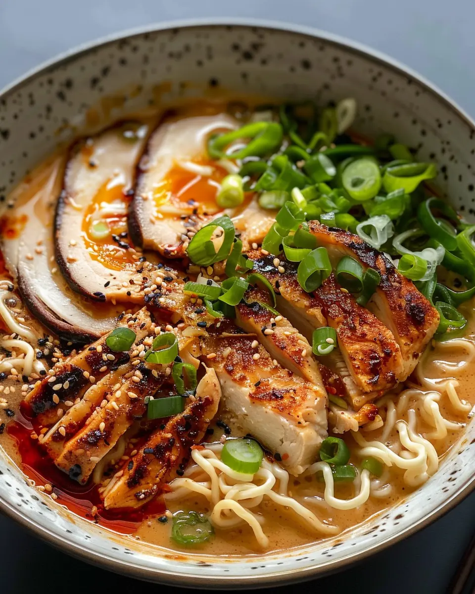 A delicious and comforting twist on traditional ramen, featuring tender chicken and rich flavors.