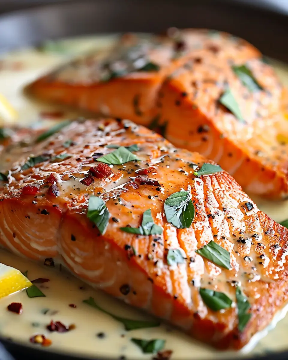 Imagine tender salmon fillets bathed in a rich, creamy sauce that’s packed with fresh vegetables. For a Tuscan twist, sauté garlic, spinach, and sun-dried tomatoes in a combination of cream and chicken broth. This alters the flavor profile beautifully, offering a balance of savory and creamy notes. Here’s how to make it: