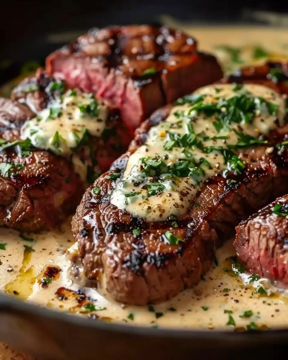 Keywords: Garlic Butter Steak, Parmesan Cream Sauce, Easy Recipes