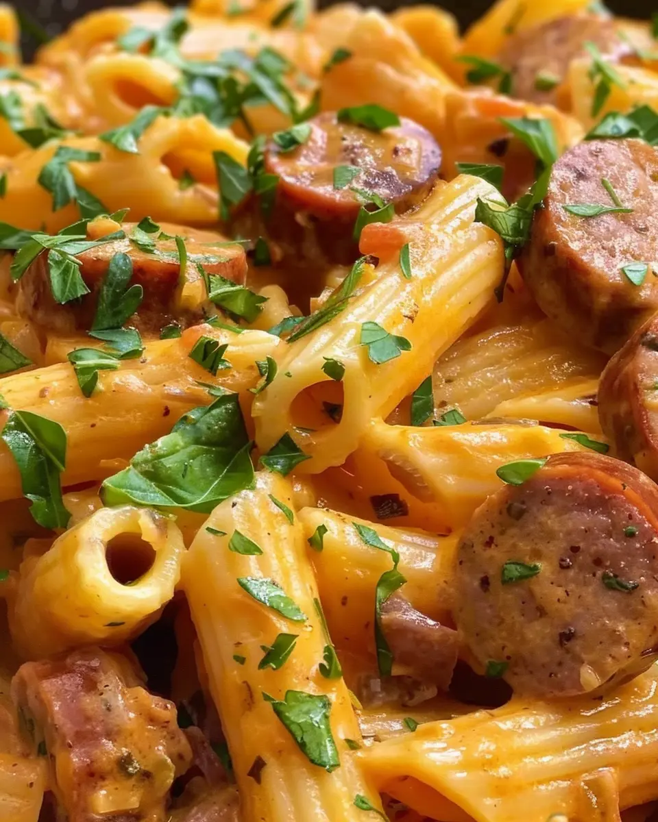 Home » Recipes » One Pot Creamy Cajun Sausage Pasta: Easy 30-Minute Delight