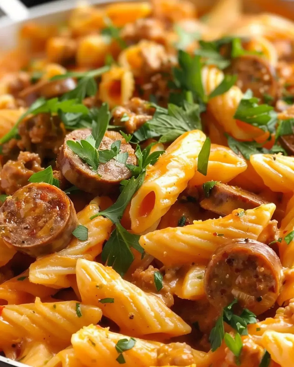 Once you’re prepped, the cooking part only takes about 20 minutes. This dish comes together quickly as you sauté the sausage, toss in the pasta, and create that creamy sauce. Perfect for those busy weeknights!
