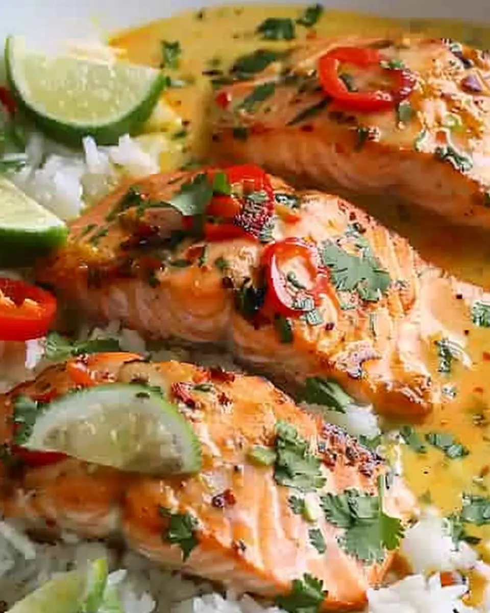 Home » Recipes » One-Pan Coconut Curry Salmon: A Comforting Flavor Adventure