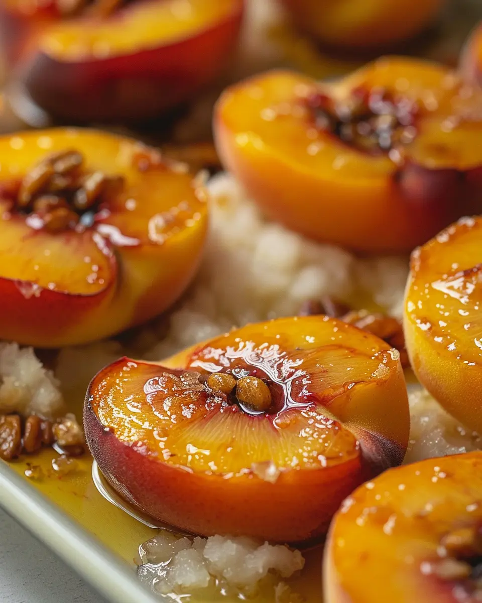 - Arrange: Place the peach halves in a baking dish, cut side up, allowing space between each to promote even cooking.