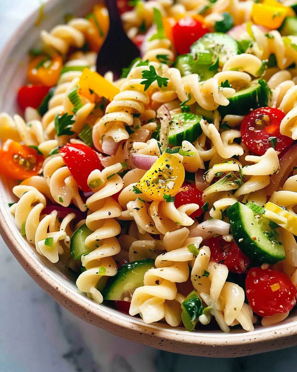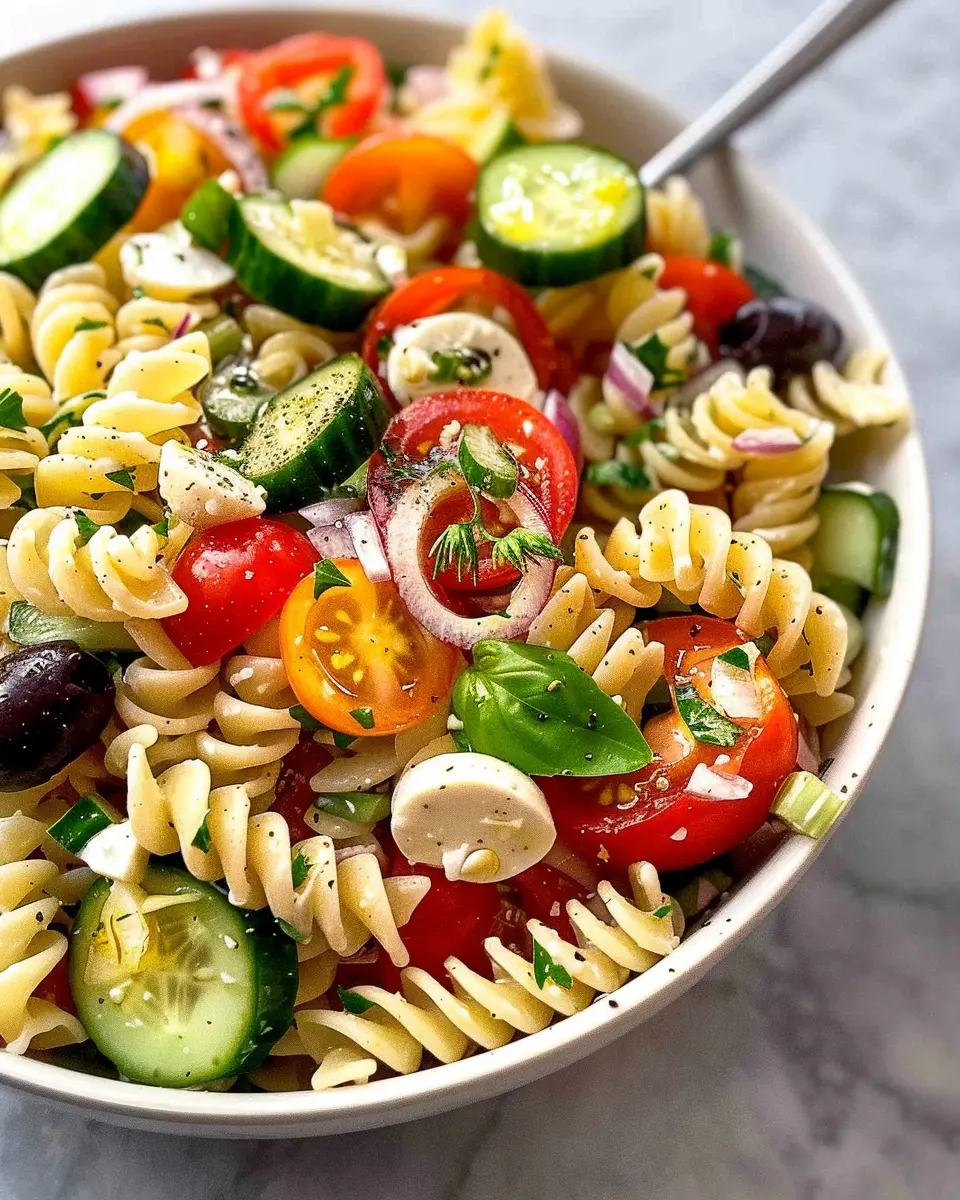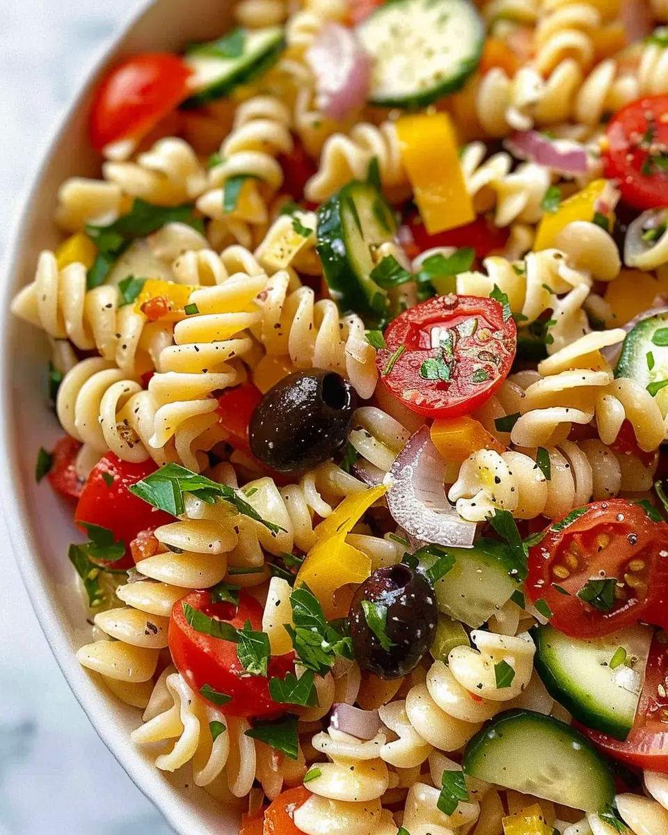 This vibrant dish bursts with fresh flavors and is perfect for summer picnics or light dinners. To whip up a delightful Mediterranean pasta salad, you’ll need: