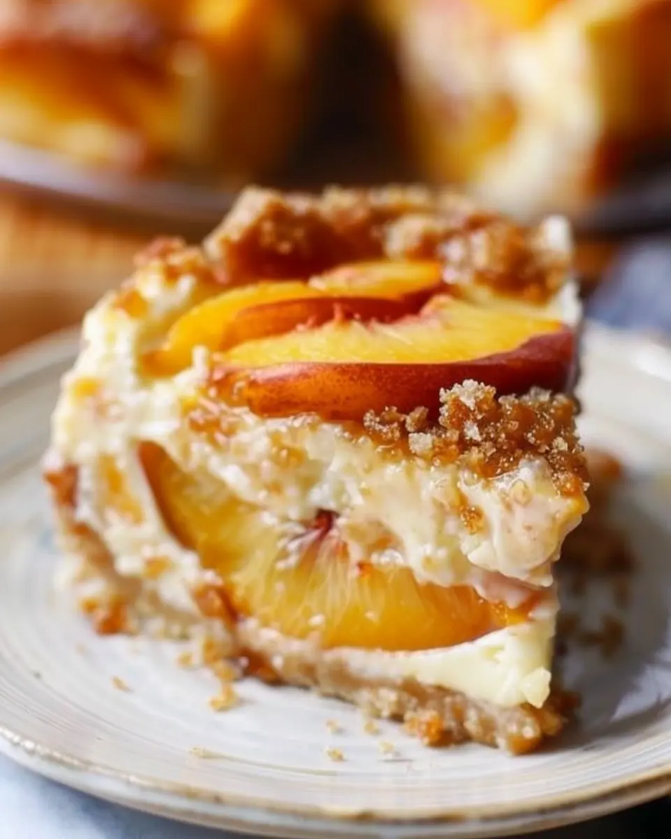 Keywords: Peach Cobbler Cheesecake, dessert, indulgent dessert, peach dessert