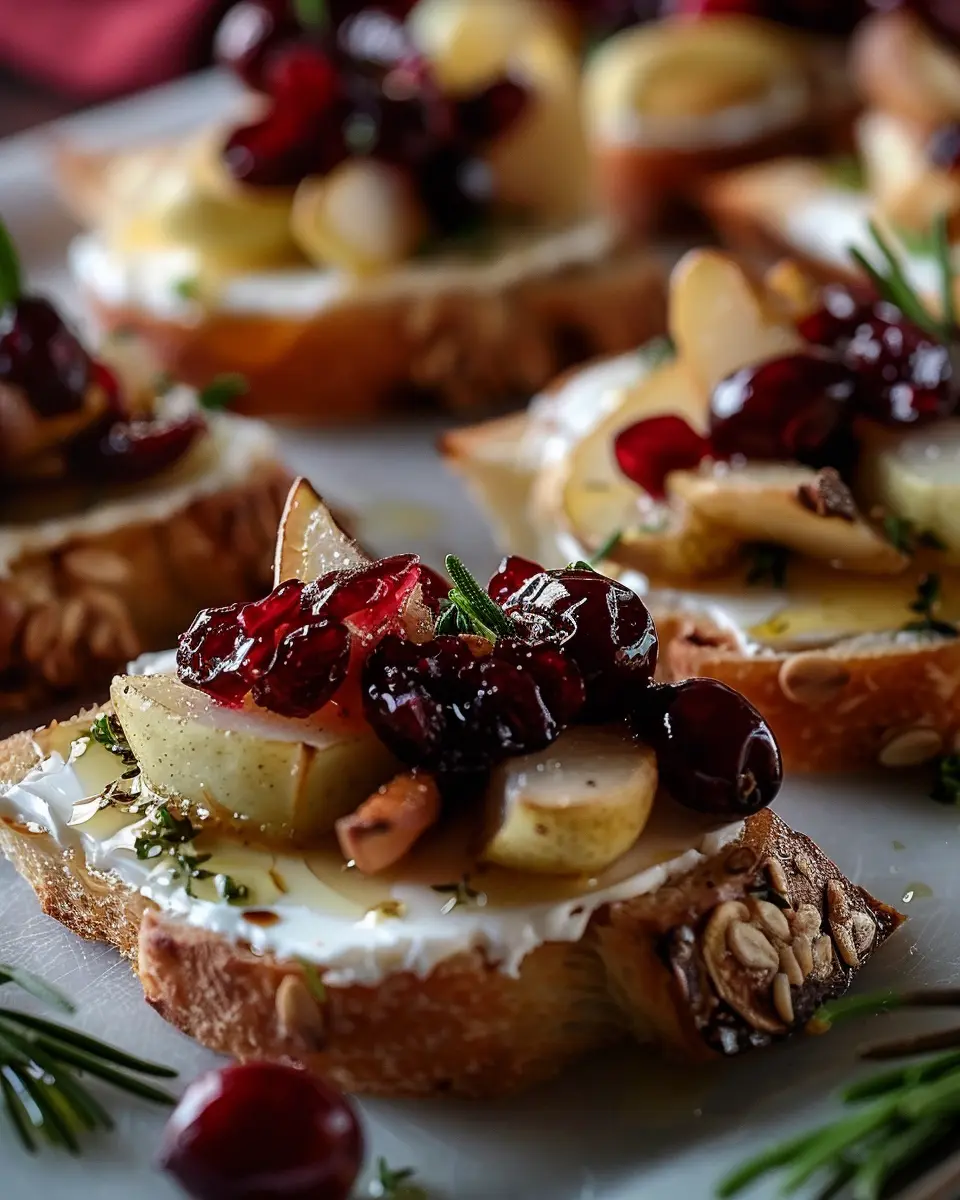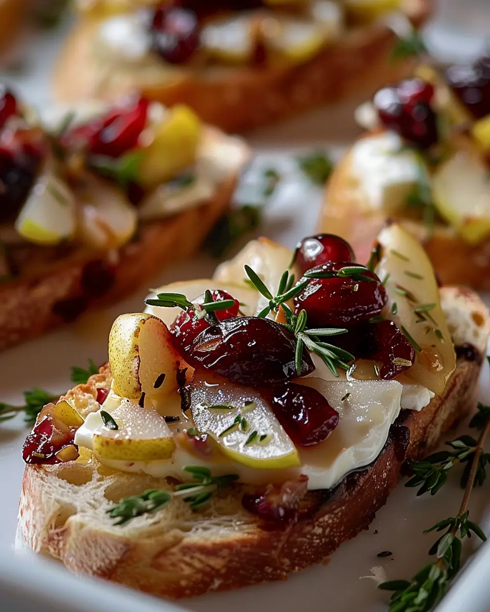 Keywords: Pear Brie Cranberry Crostini, festive appetizer, holiday bites