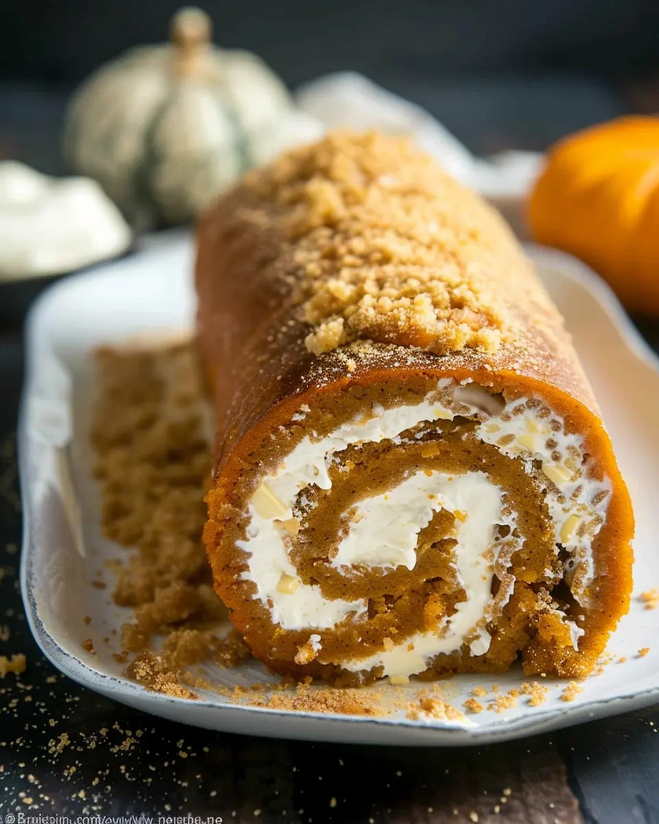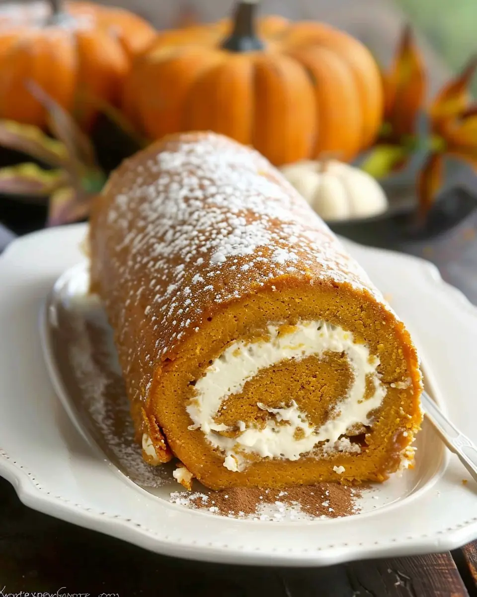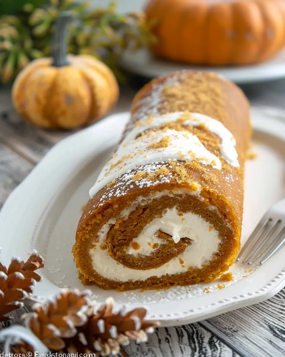 Serve on a Decorative Platter: A rustic wooden board or a colorful ceramic dish can make your pumpkin roll look magnificent.