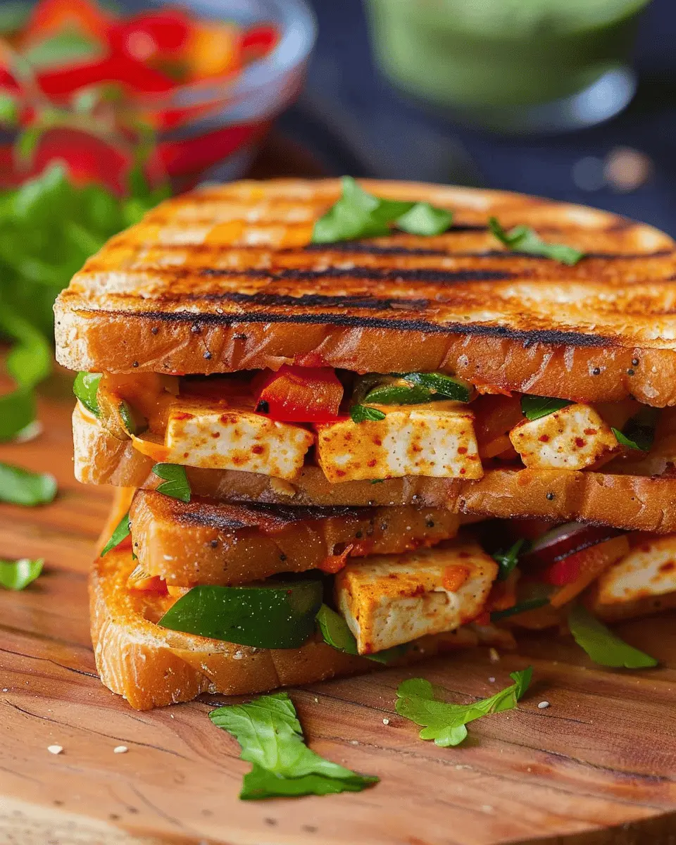 Enjoying a quick skillet-toasted veggie paneer sandwich? Let’s elevate that experience! Pair your sandwich with a variety of dips. A tangy mint chutney or a smooth yogurt-based raita complements the flavors beautifully. For sides, a fresh cucumber salad or some crispy sweet potato fries make delightful companions. As for drinks, a refreshing iced hibiscus tea or a fruity lemonade can offer a perfect balance to the meal. Looking for something on the healthier side? Try a coconut water or a simple infused water with lemon and mint for a refreshing twist.