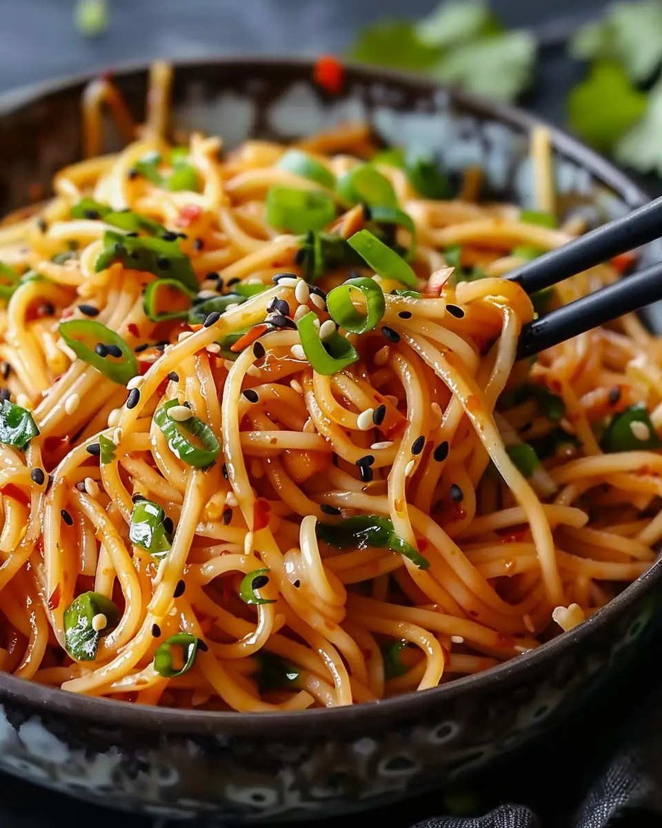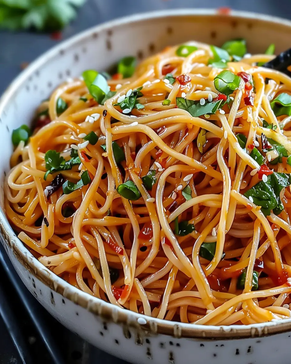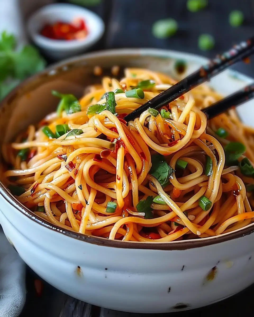 Presentation matters! Transfer your savory chilli garlic noodles to a serving bowl and top with sliced green onions for that fresh crunch. You can even add a sprinkle of red pepper flakes if you want to kick the heat up a notch.