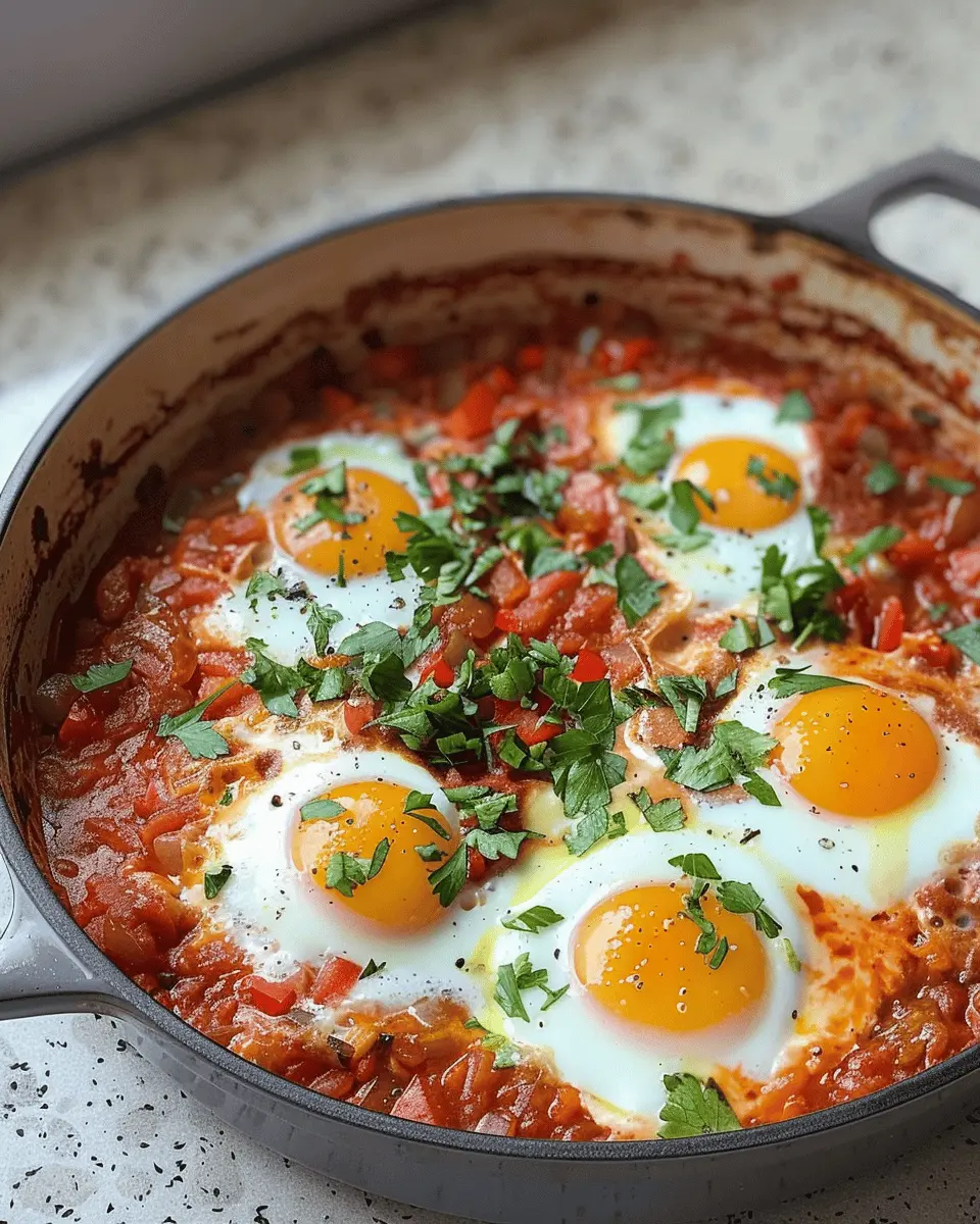 • Eggs: The star of the show! Fresh eggs are key—poaching them gently in the sauce defines this dish.