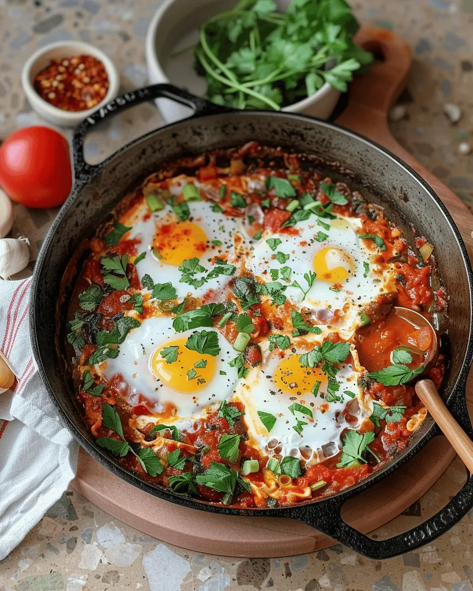 As you prepare to serve your shakshuka, remember that presentation is key! Garnish with fresh herbs such as cilantro or parsley, and maybe sprinkle a touch of feta cheese on top.
