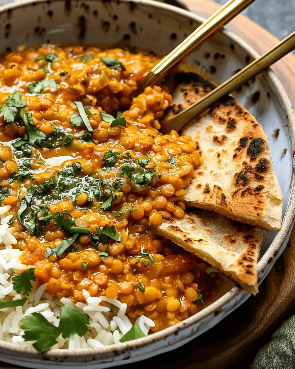 - Naan: Dive into a piece of warm naan for scooping up that flavorful lentil goodness. It’s a classic pairing!