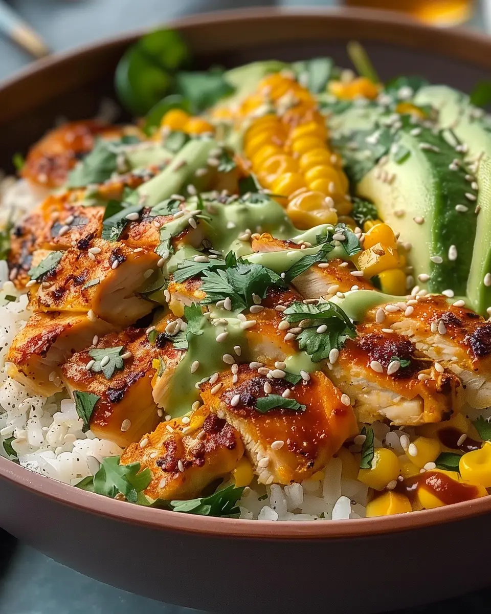 For those who love a kick, a spicy street corn chicken rice bowl is the way to go. To amp up the heat, add chopped jalapeños or a drizzle of sriracha to your bowl. You can also swap out your regular crema for a spicy chipotle version, giving your dish that smoky, fiery flavor. This twist not only excites your taste buds but also makes the meal memorable. And if you’re feeling adventurous, throw in some crushed red pepper for that extra layer of heat.