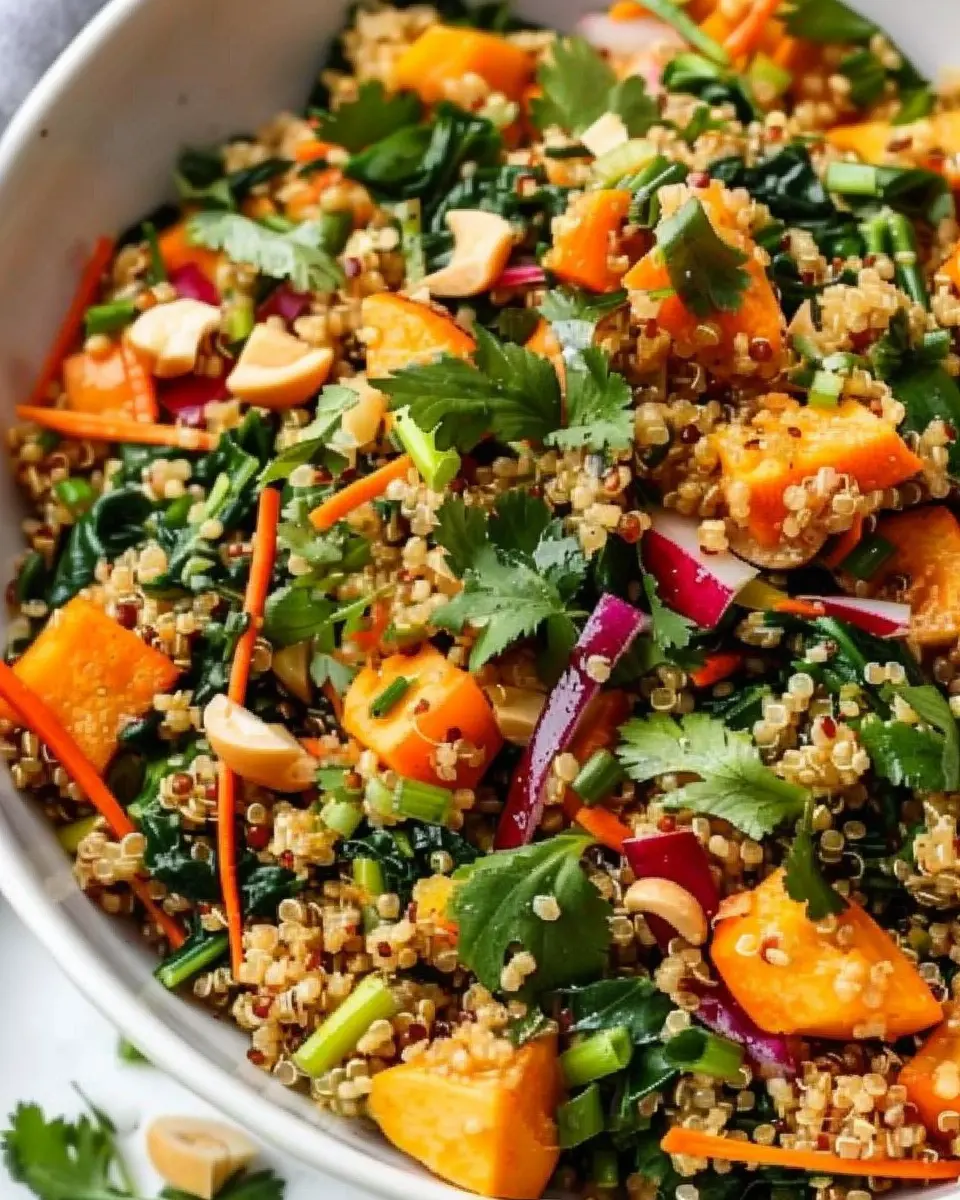 The Thai Butternut Quinoa Salad is not just a feast for the eyes but also a powerhouse of nutrition. Packed with vitamins, fiber, and proteins, it’s a satisfying dish that promotes gut health and provides sustained energy. Quinoa, known for its complete protein profile, combined with antioxidant-rich butternut squash, makes this salad a smart choice for any meal.