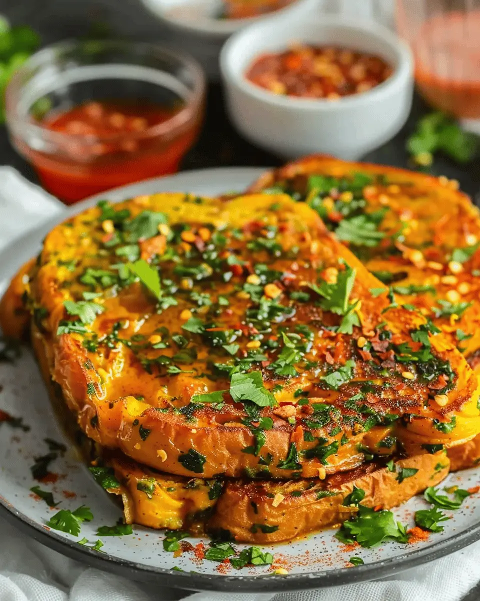 Enjoy a delicious twist on a classic breakfast with this Vegan French Toast recipe, infused with savory masala flavors.